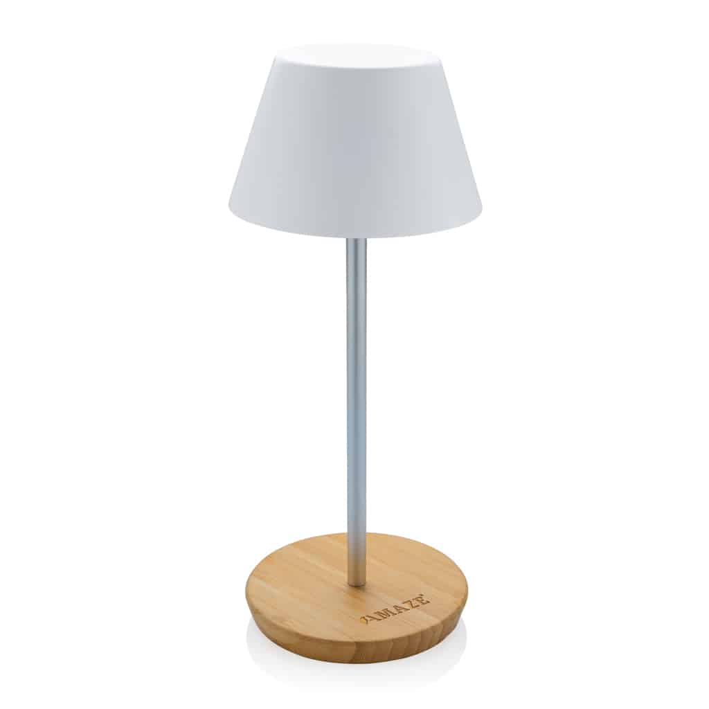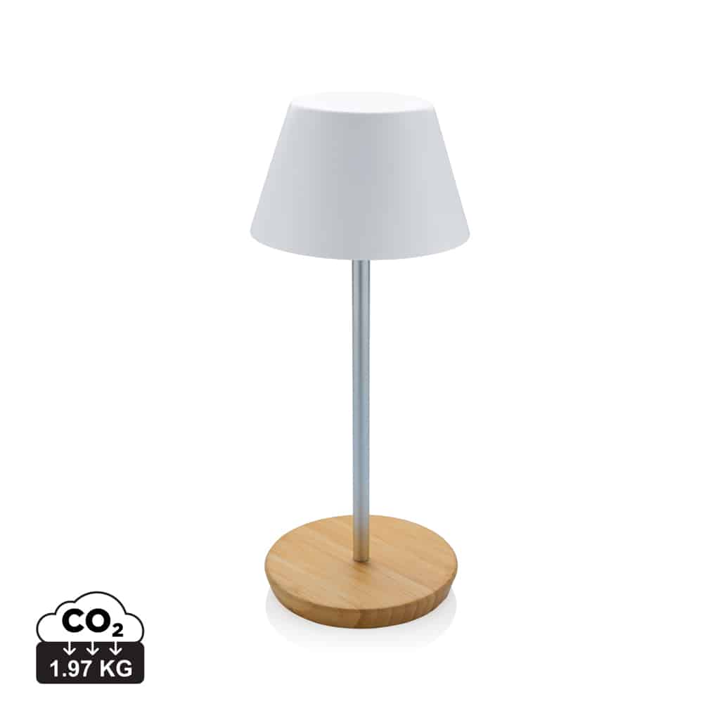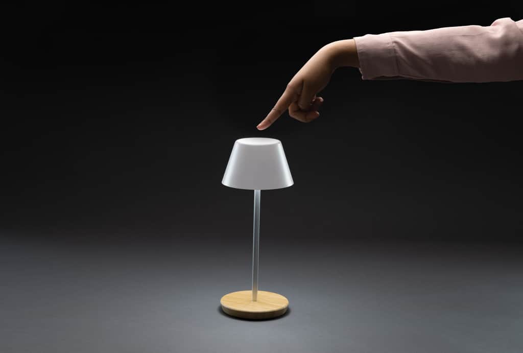 La lampe de table Pure Glow associe design moderne et respect de l’environnement grâce à sa fabrication à partir de plastique ABS recyclé certifié RCS, d’aluminium recyclé et de bambou certifié FSC 100%. Avec un contenu recyclé total de 40%, elle reflète un engagement fort en faveur du développement durable, valorisant ainsi l’image de votre entreprise auprès de vos clients et partenaires.