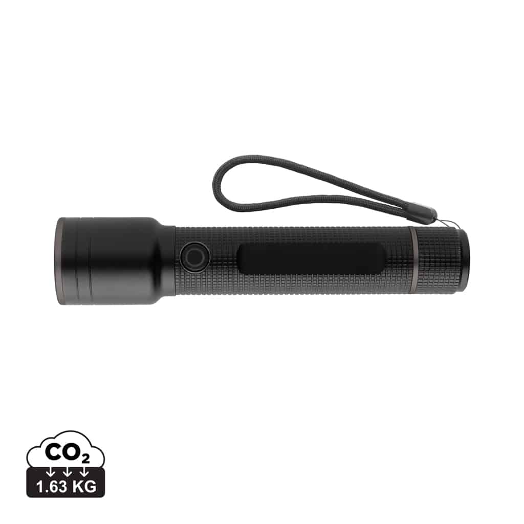 La lampe torche 10W rechargeable par USB en alu RCS Gear X allie performance et écoresponsabilité pour vos campagnes de communication.