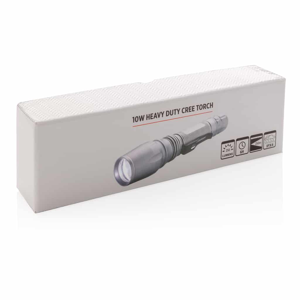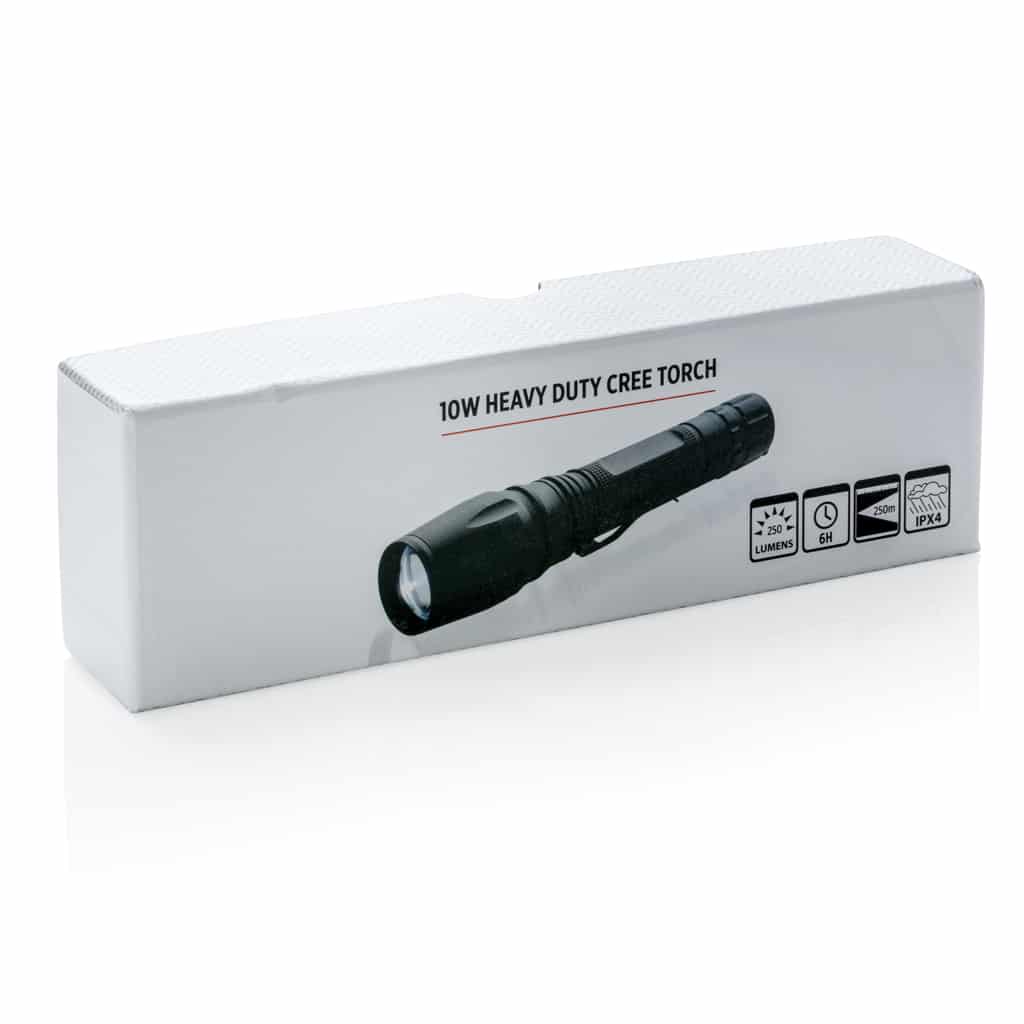 La lampe torche CREE 10 W personnalisable offre une lumière puissante et durable, idéale pour valoriser votre communication d’entreprise.