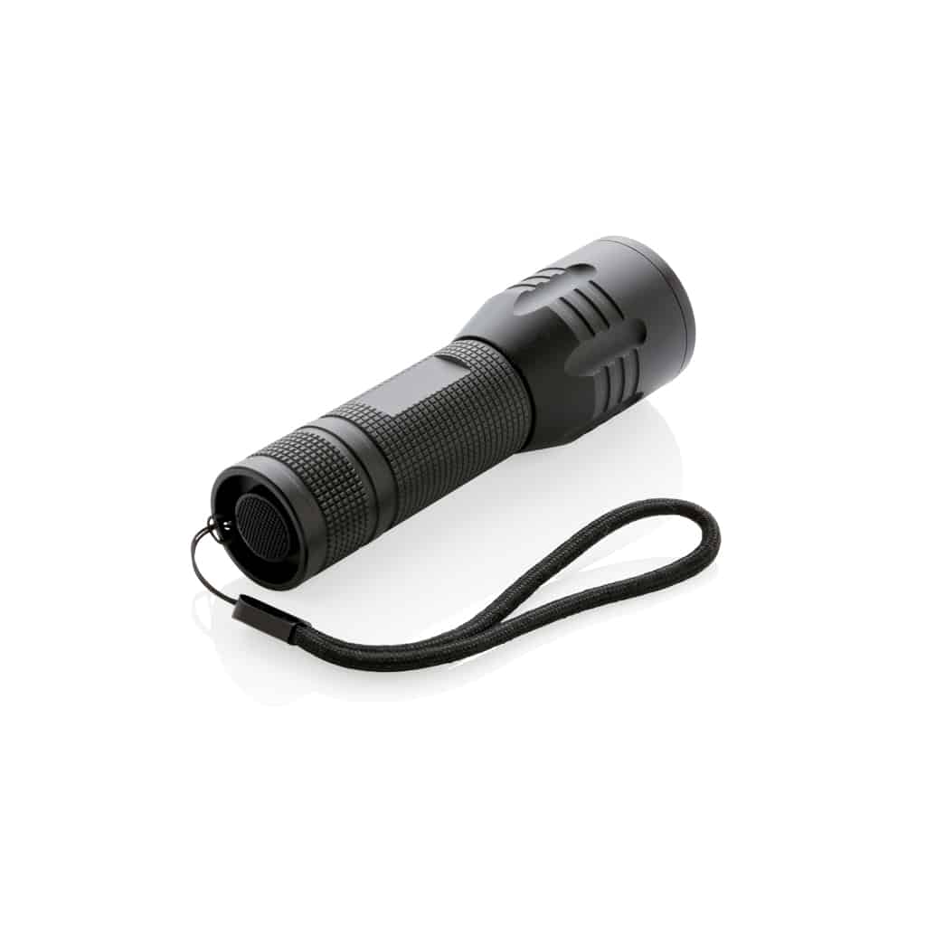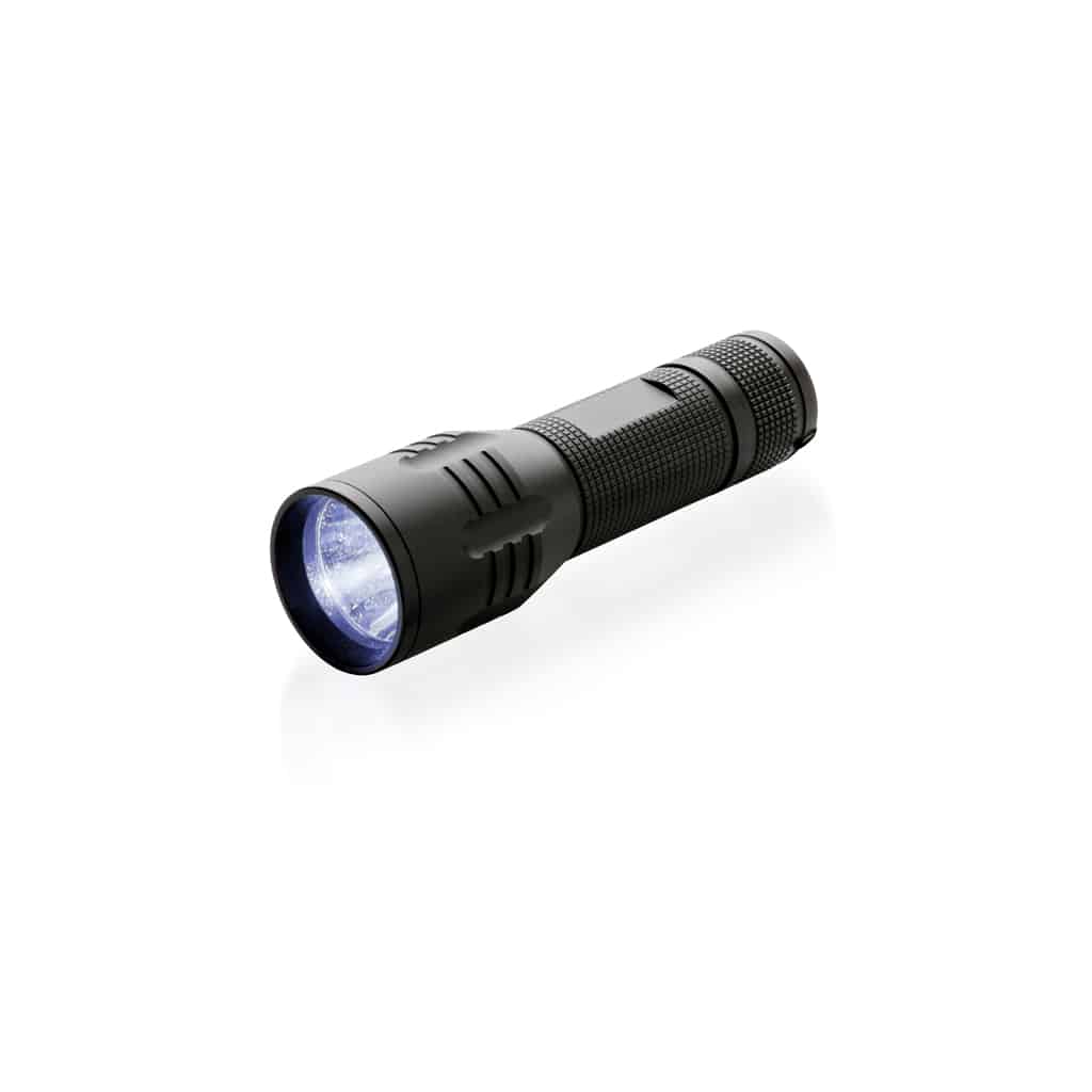 La lampe torche CREE 3 W medium en aluminium allie robustesse et efficacité grâce à une puissance lumineuse de 100 lumens. Ce modèle offre une autonomie de 6 heures avec ses piles incluses, garantissant une utilisation prolongée lors de vos actions promotionnelles.