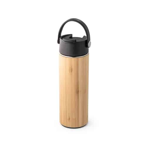 Découvrez la bouteille thermos 440mL en bambou, acier inox et PP, un objet publicitaire écologique et performant.