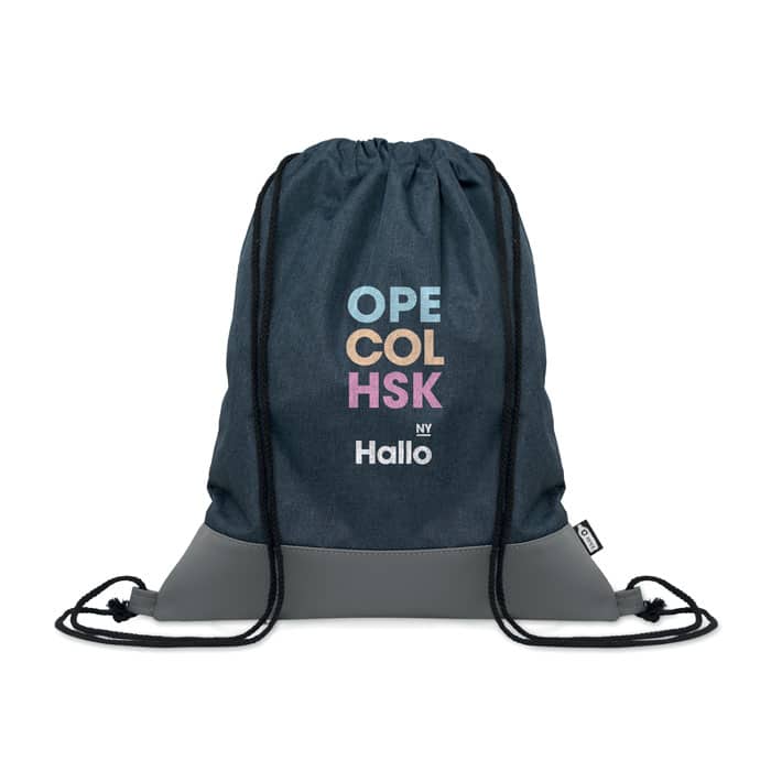 Confectionné en polyester RPET 300D bi-ton, il associe durabilité et respect de l'environnement. Les finitions en PU doux garantissent une prise en main agréable, tandis que le cordon en polycoton assure solidité et confort.