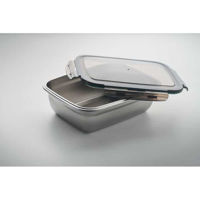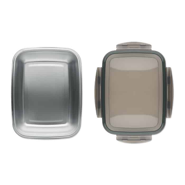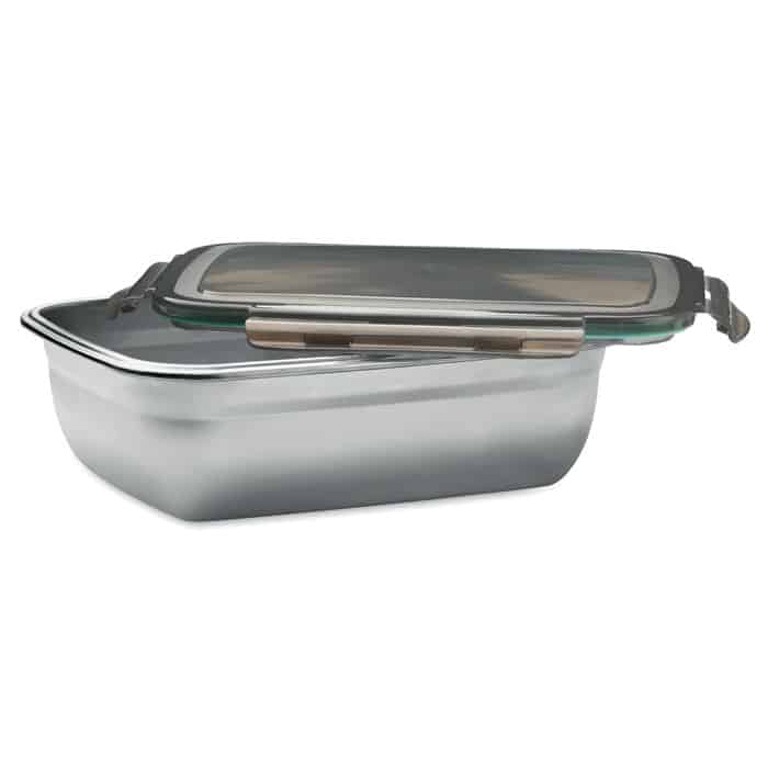 La lunch box LOX PLUS est un objet publicitaire éco-responsable conçu en acier inoxydable recyclé avec un couvercle en polypropylène et une fermeture à 4 clips latéraux. Sa capacité de 1500 ml et son séparateur intérieur la rendent idéale pour les repas équilibrés, tout en offrant un espace optimal pour votre personnalisation logo.