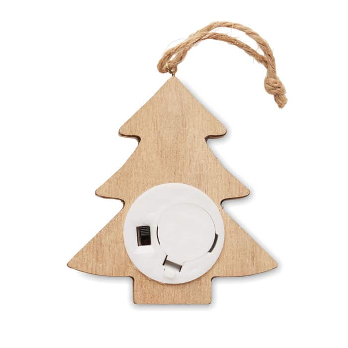 Le sapin lumineux en bois personnalisable LULIE allie naturel et modernité pour valoriser votre marque.