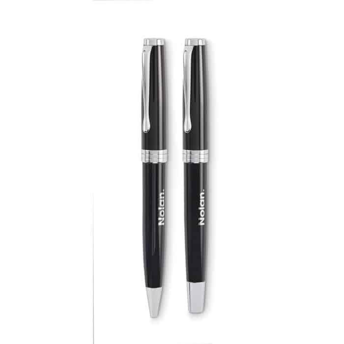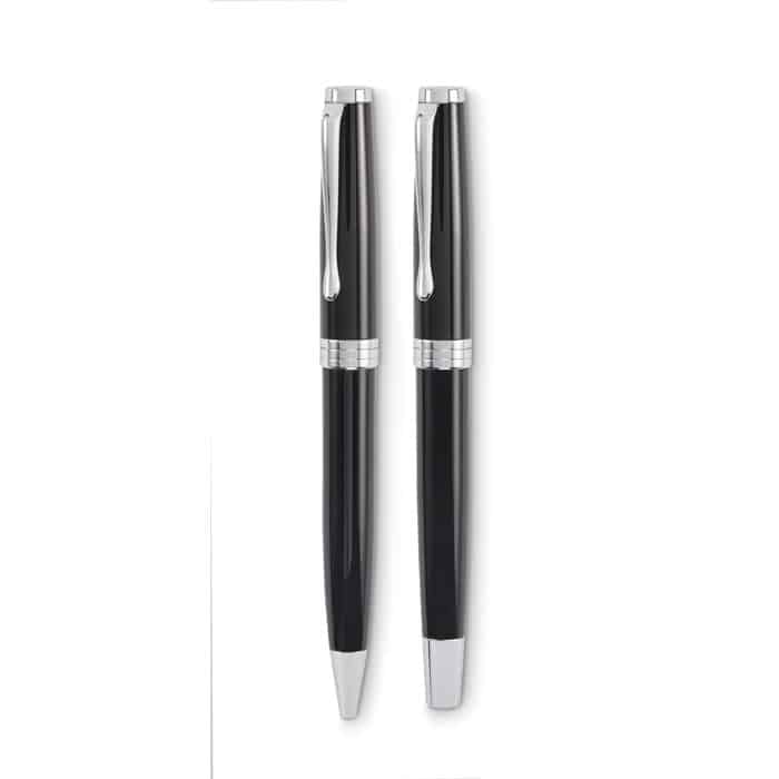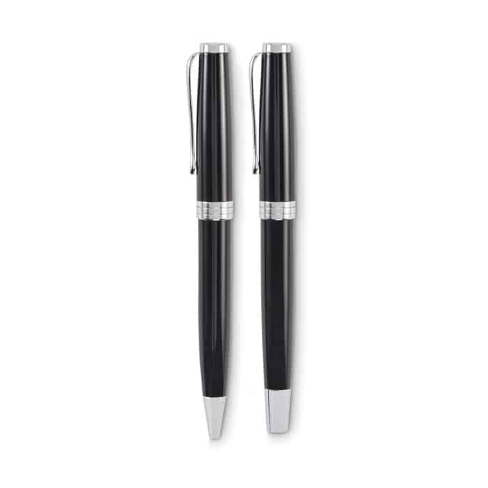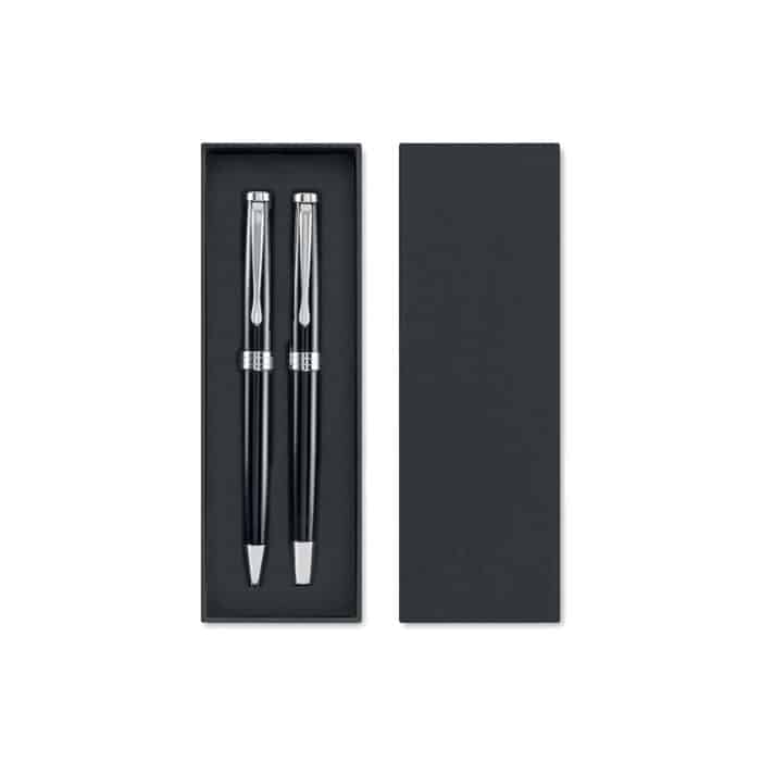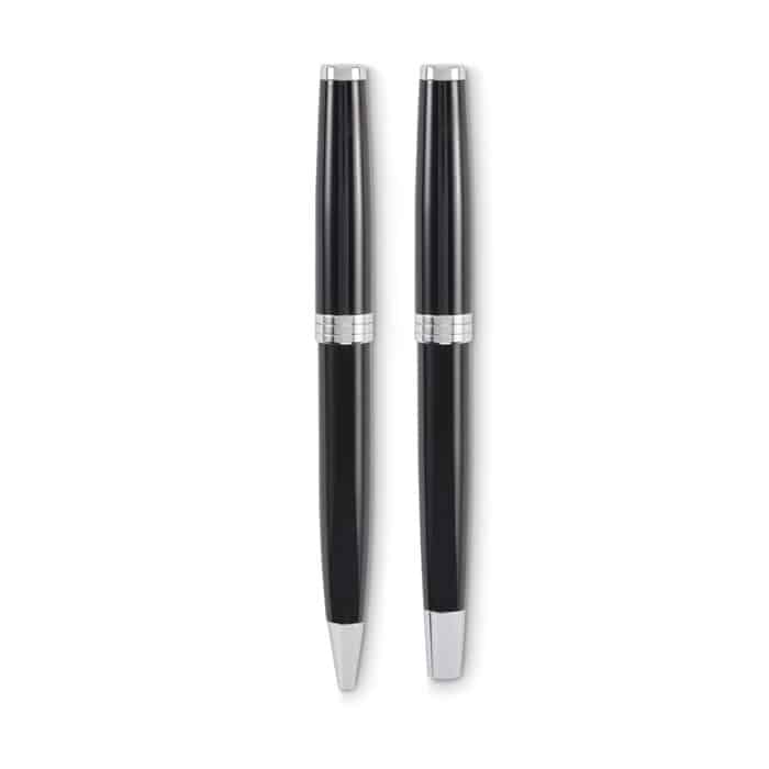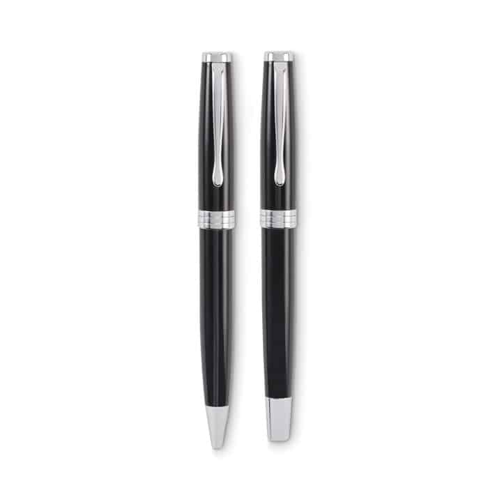 Le LYON SET se compose d’un stylo à bille twist et d’un roller, tous deux conçus avec un corps en acier inoxydable recyclé, gage de qualité et d’éco-responsabilité. La présence d’encre bleue pour le stylo à bille et noire pour le roller permet une utilisation polyvalente. Présentés dans une élégante boîte cadeau, ces stylos renforcent l’image professionnelle de votre marque tout en offrant un cadeau d’affaires utile et durable.