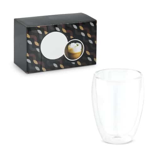Set de 2 tasses en verre borosilicaté à double paroie avec capacité jusqu’à 350 mL. Produit livré sous boîte cadeau