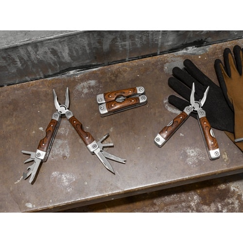 Découvrez la pince pliante multifonctions MAGNUM en acier inoxydable et bois, un outil pratique et complet pour vos campagnes promotionnelles.