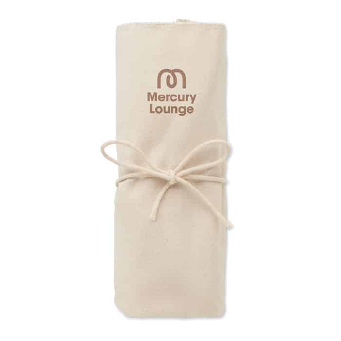 Pochette en coton avec cordon, outils en bois et métal de qualité.