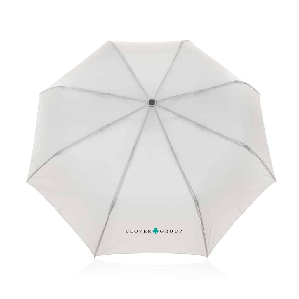Mini parapluie 21" à ouverture automatique en bois d'acacia, idéal pour une communication d’entreprise durable et élégante.