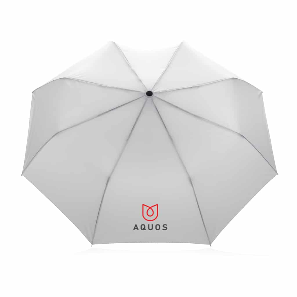 Mini parapluie automatique 21" en rPET 190T Impact AWARE™, un objet publicitaire durable et pratique.