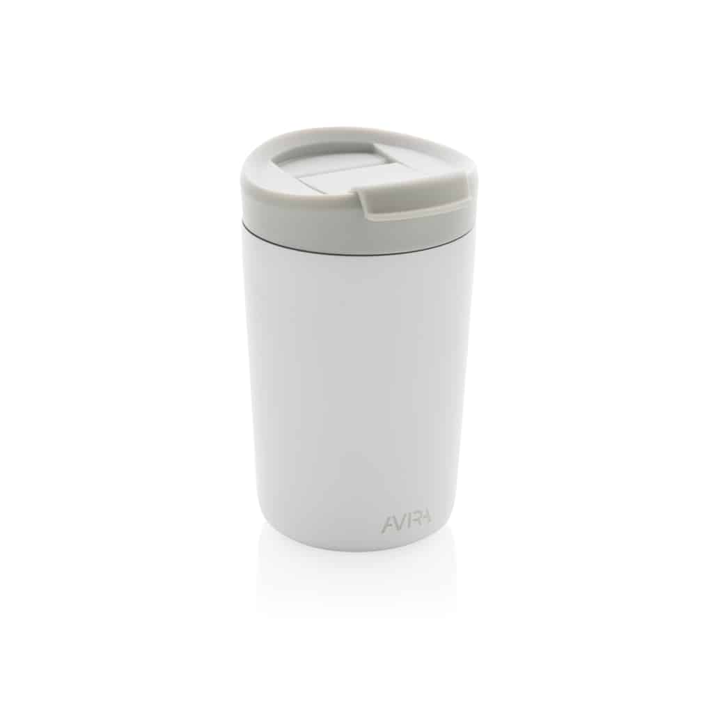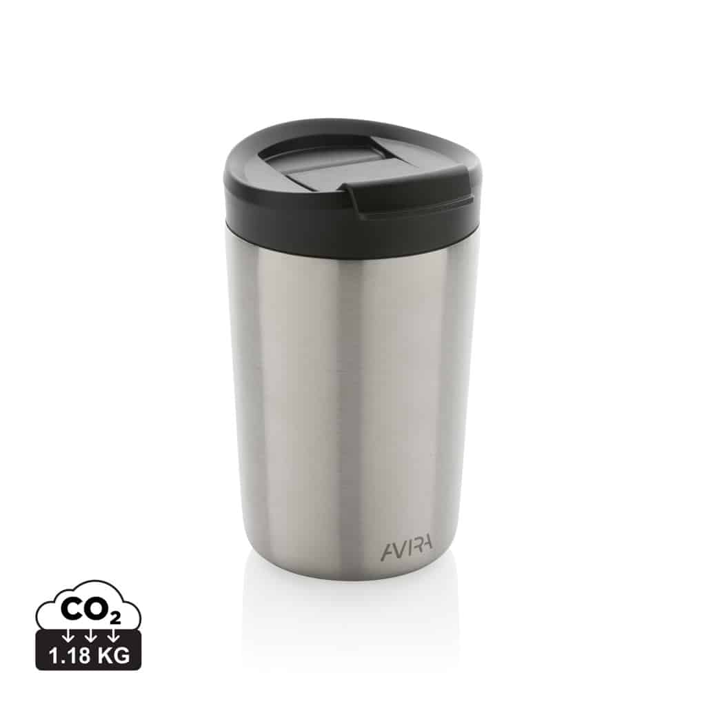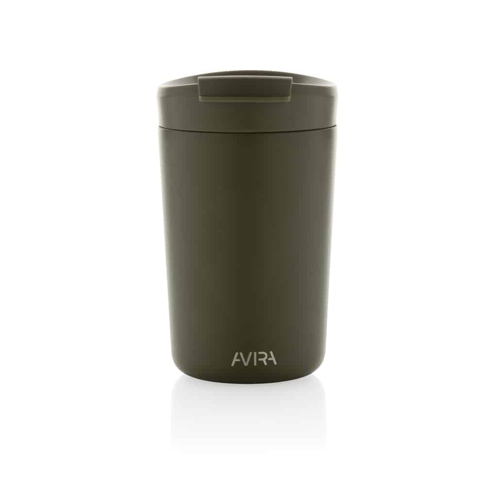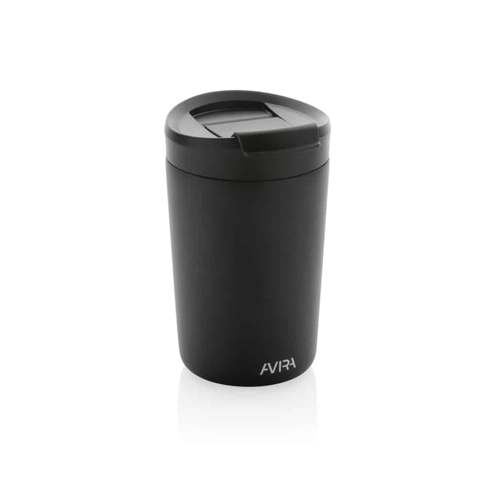 Le mug 300ml en acier recyclé RCS Avira Alya allie design durable et performances thermiques pour valoriser votre communication d’entreprise.