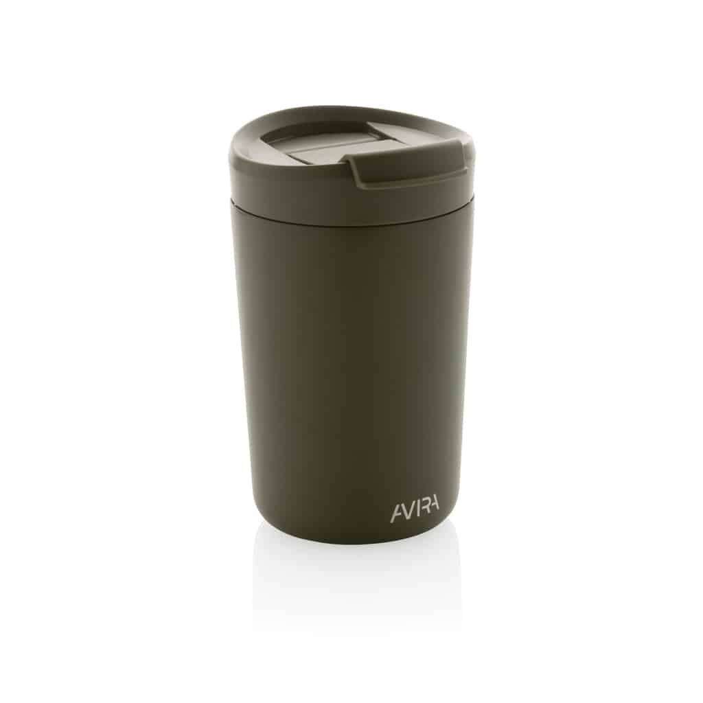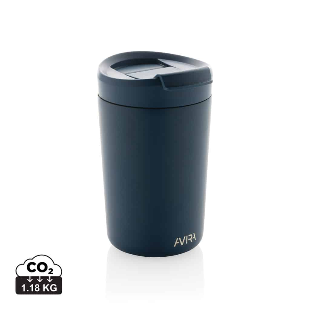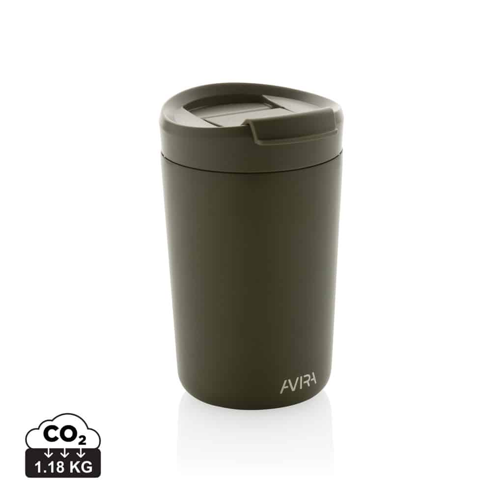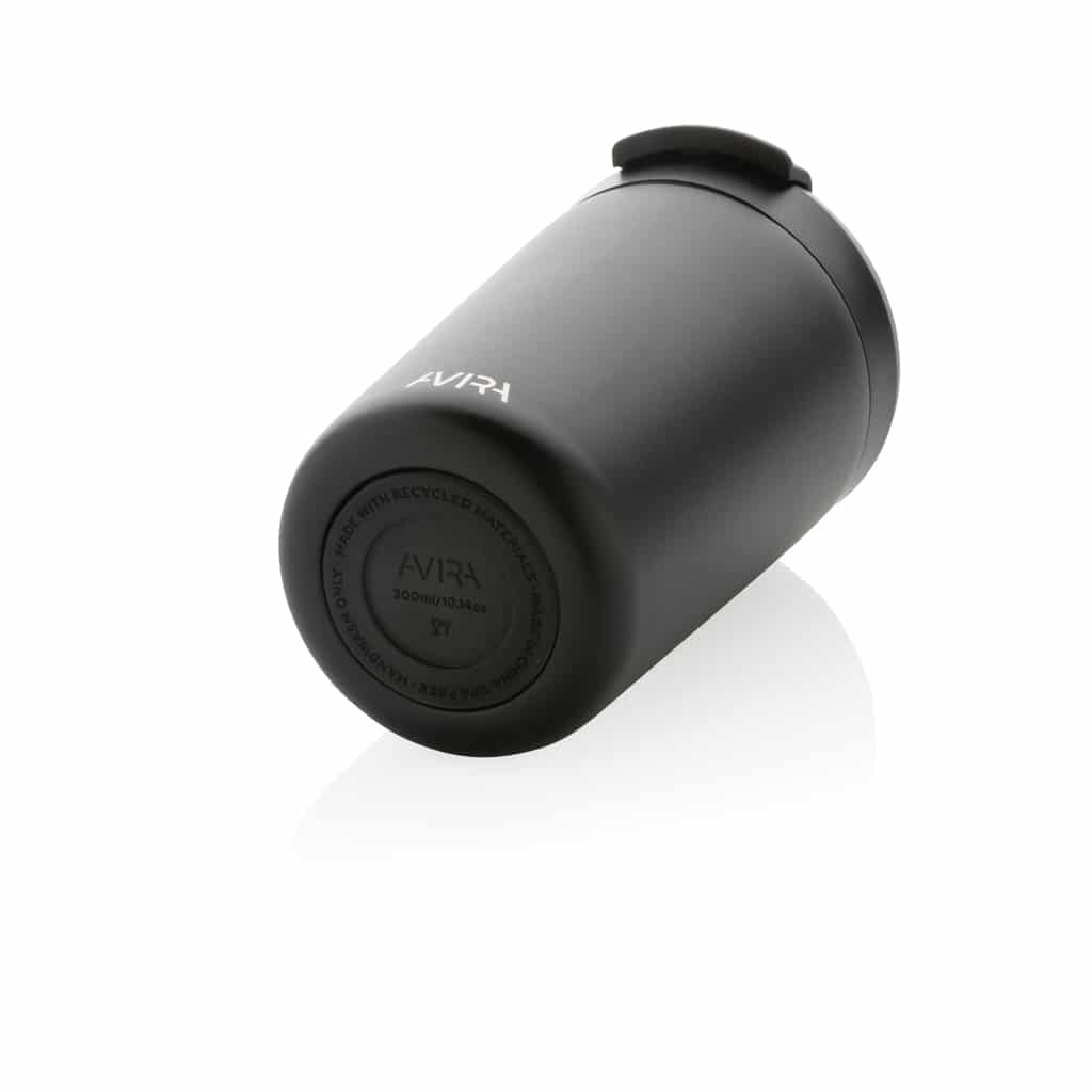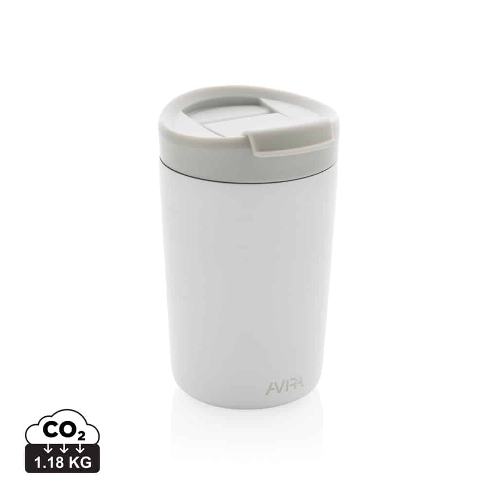 Le mug 300ml en acier recyclé RCS Avira Alya allie design durable et performances thermiques pour valoriser votre communication d’entreprise.