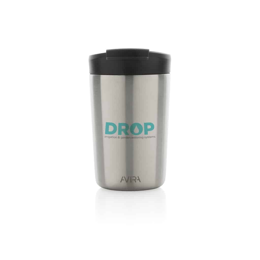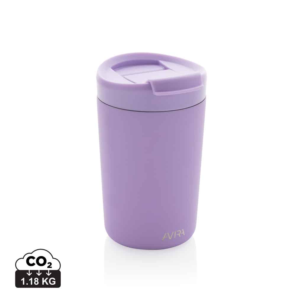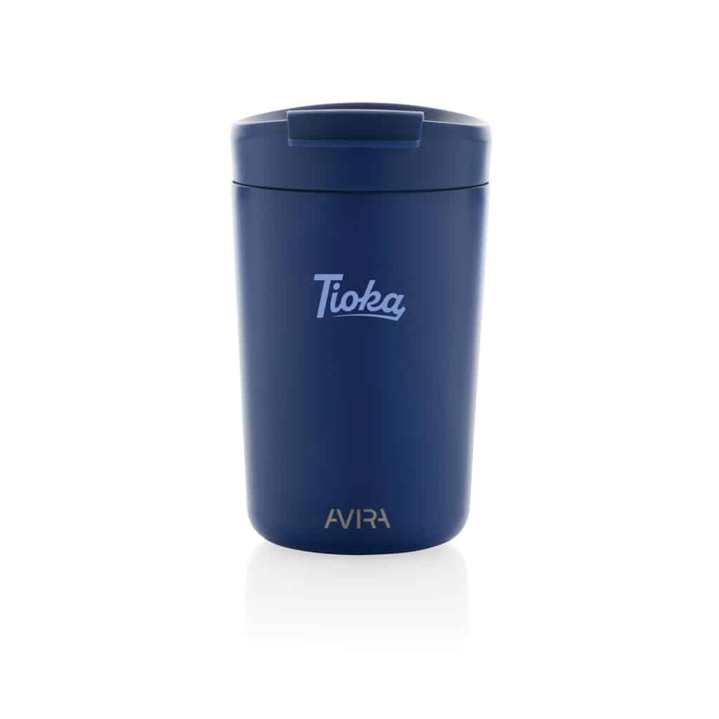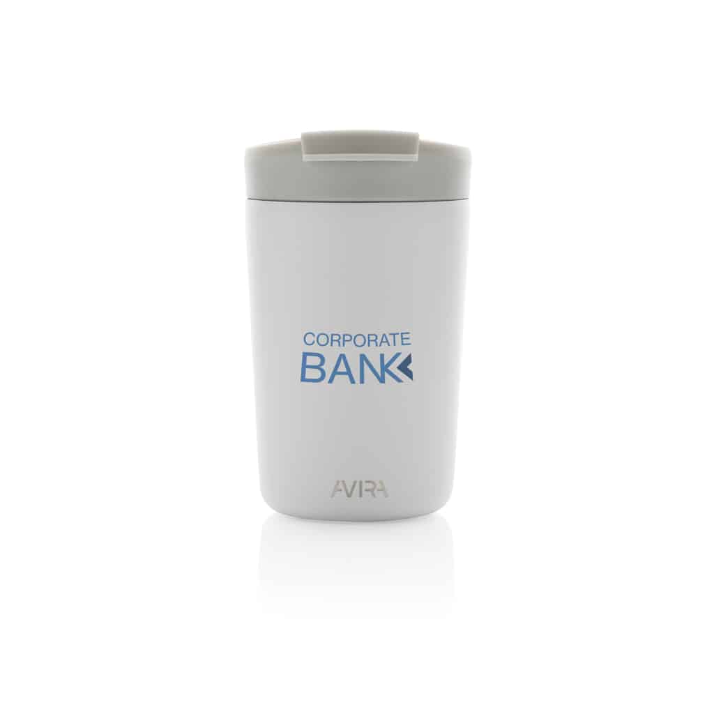 Le mug 300ml en acier recyclé RCS Avira Alya allie design durable et performances thermiques pour valoriser votre communication d’entreprise.