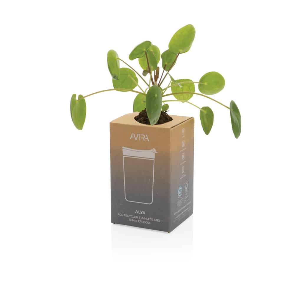 En intégrant ce mug dans vos campagnes promotionnelles, vous affirmez votre engagement en faveur du développement durable et améliorez votre image de marque. Offrir un objet à la fois esthétique et respectueux de l’environnement valorise votre communication institutionnelle et fidélise vos partenaires. L’emballage kraft certifié FSC® inclus peut être réutilisé comme pot de fleurs ou porte-crayon, renforçant ainsi l’impact éco-responsable de votre message.