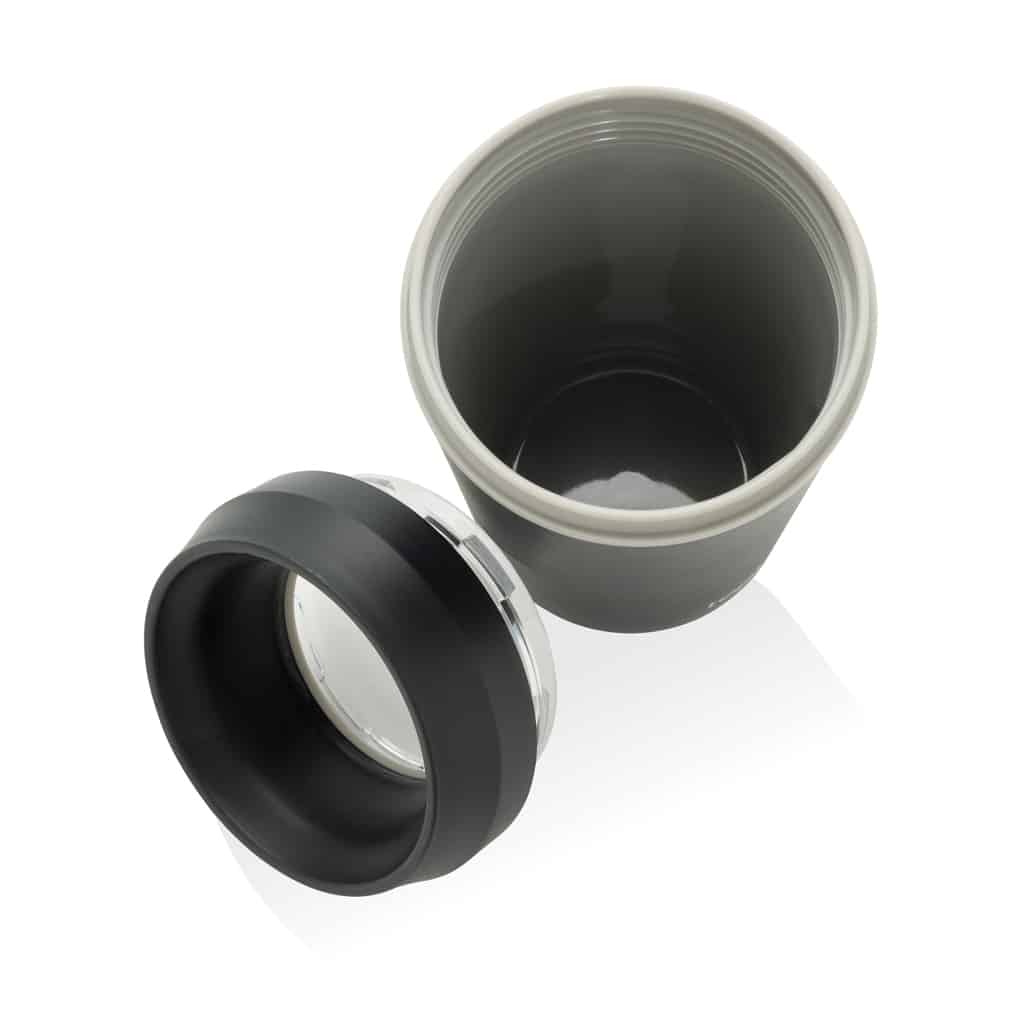 Ce mug léger et robuste est conçu pour accompagner vos collaborateurs et clients lors de leurs déplacements, salons professionnels ou événements corporate. Sa capacité de 354 ml convient parfaitement aux amateurs de café ou de thé, offrant une prise en main confortable et une utilisation simple grâce à son couvercle sécurisé. Sa conception durable en fait un objet réutilisable, pratique pour un usage quotidien au bureau ou en extérieur.