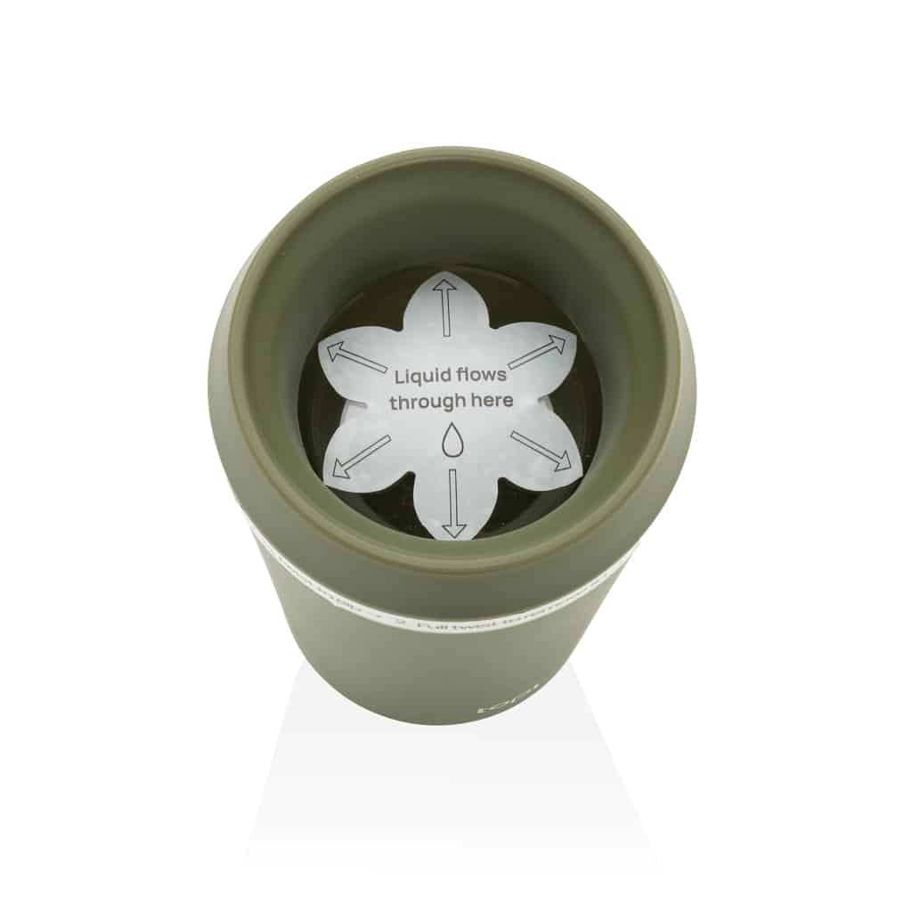 Contenance de 354 ml, couvercle transparent breveté 360° pour une dégustation facile, format léger et robuste idéal pour les déplacements.