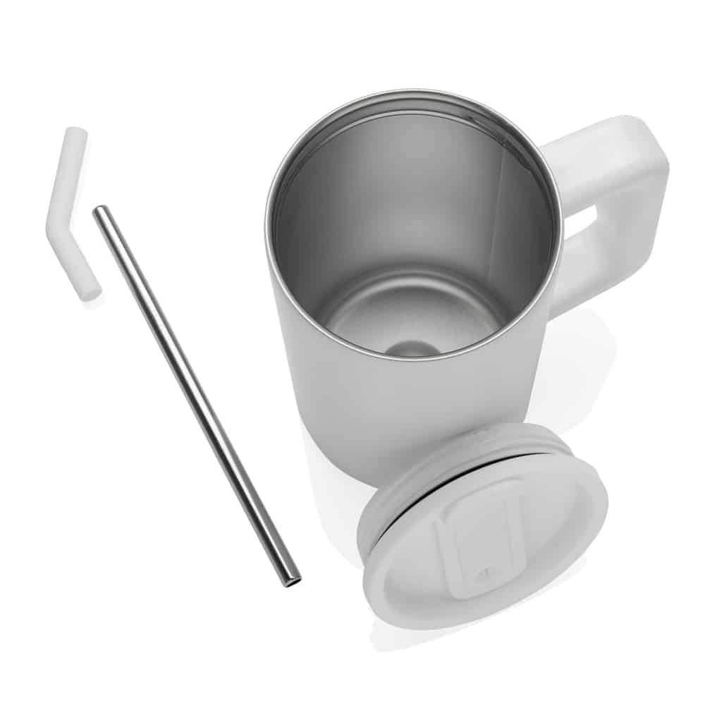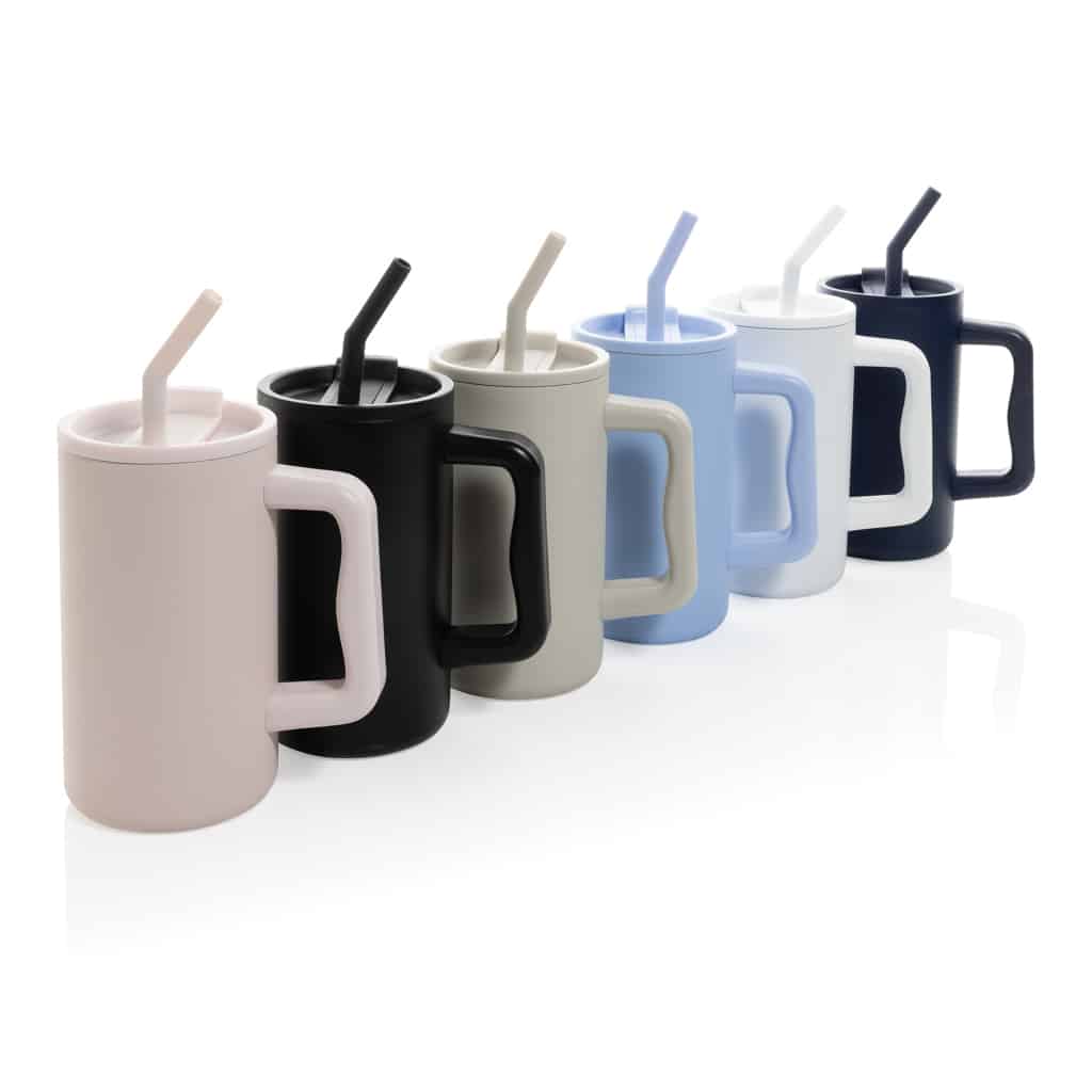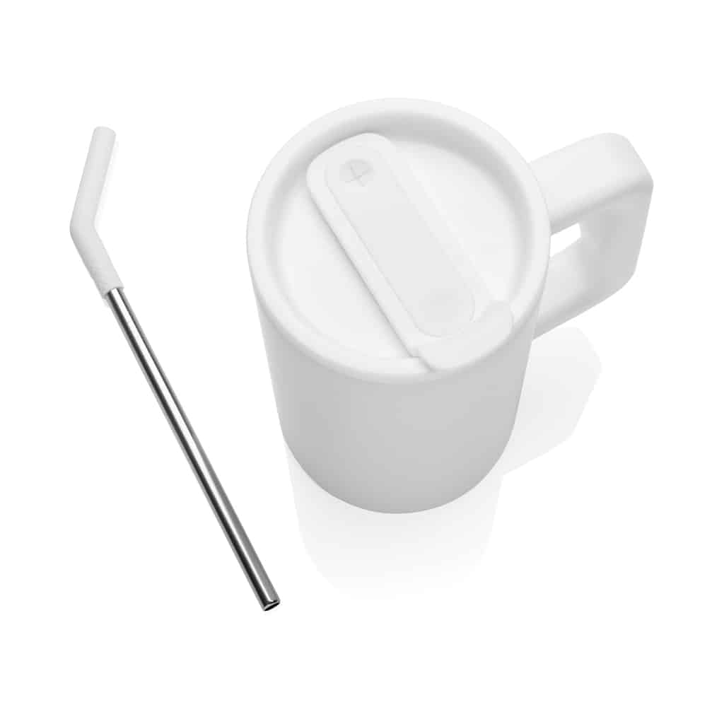 Le mug se distingue par son couvercle vissable sécurisé, muni d’un bec verseur pratique ou d’une ouverture pour paille, offrant une grande polyvalence d’usage. Équipé d’une paille et d’un embout en silicone, il facilite la consommation en déplacement ou lors de réunions. Facile à nettoyer à la main, ce mug accompagne efficacement les collaborateurs tout au long de leur journée de travail.