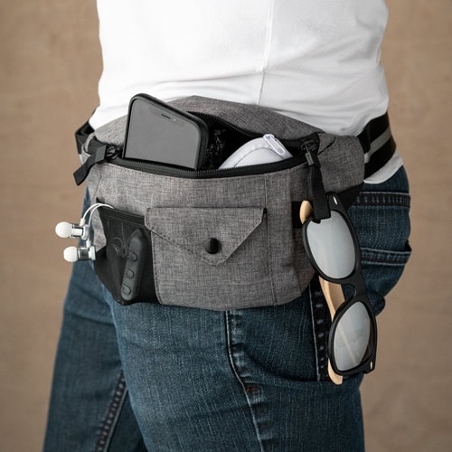 Adapté aux salons professionnels et événements corporate, ce sac banane facilite le transport d’objets indispensables tout en gardant les mains libres. Sa sangle réglable permet un ajustement optimal, tandis que l’élastique latéral offre une fixation pratique pour mousquetons ou lunettes de soleil. Idéal pour les collaborateurs en mobilité, il allie confort et praticité au quotidien.