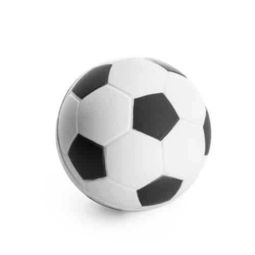 Anti-stress en forme de ballon de football, diamètre de 63 mm, adapté à une prise en main confortable.