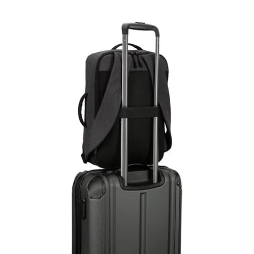 Sac à dos pour ordinateur portable pouvant également servir de mallette grâce à sa poignée latérale et à sa forme compacte.