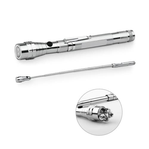 Cette lanterne LED métallique extensible allie robustesse et flexibilité grâce à sa structure en métal extensible. Équipée de 3 LED puissantes, elle offre un éclairage efficace pour vos collaborateurs et clients. Son aimant intégré à la pointe et son clip facilitent son utilisation au quotidien, renforçant ainsi la visibilité de votre marque.