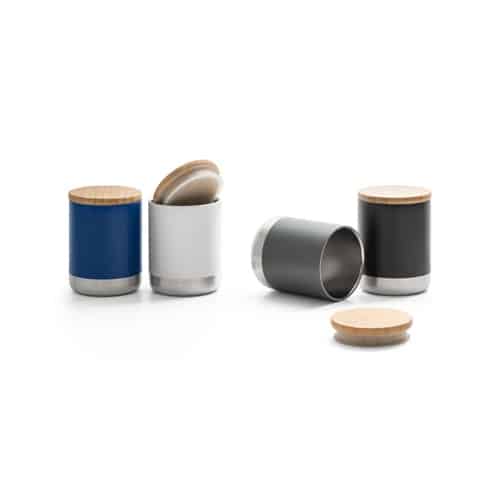 Verre en acier inoxydable (36% recyclée), double parois et couvercle en bambou avec joint en silicone pour une protection supplémentaire. Capacité allant jusqu’à 370 mL. il est recouvert d’un revêtement en poudre qui lui confère plus de durabilité et de résistance. Livré dans une boîte cadeau en papier kraft. Le produit étant fabriqué à partir de matériaux naturels, la couleur du produit ainsi que le résultat de l’impression peuvent varier d’un produit à l’autre