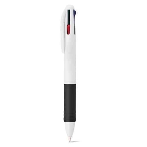 Stylo à bille avec antidérapant. Ecriture bleue, rouge, verte et noire