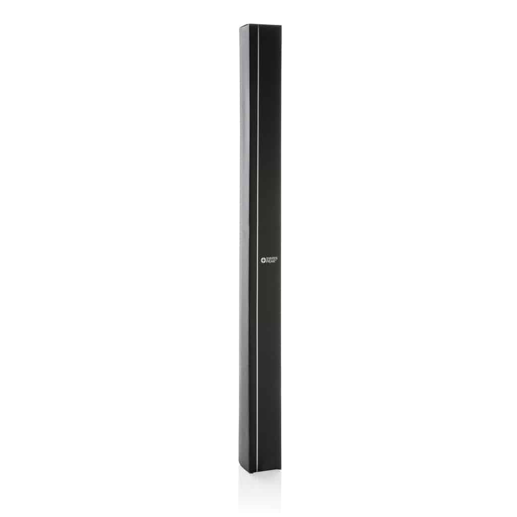 Idéal pour accompagner vos collaborateurs ou clients lors de salons professionnels, événements corporate ou campagnes promotionnelles, ce parapluie offre une prise en main confortable grâce à sa poignée droite en caoutchouc ABS. Livré dans une élégante boîte cadeau Swiss Peak FSC kraft, il valorise votre image tout en facilitant la protection contre les intempéries.