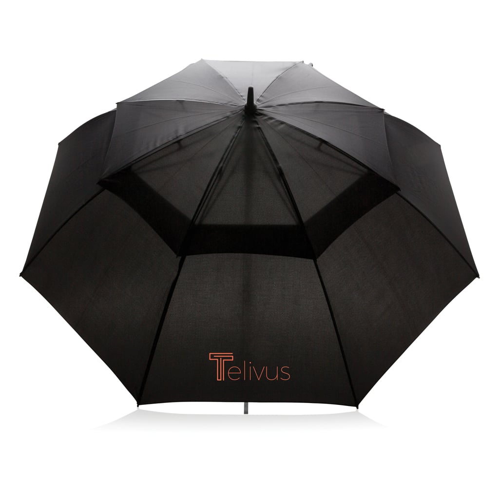 Le parapluie tempête 30" Swiss Peak AWARE™ Tornado allie robustesse et écoresponsabilité pour une communication professionnelle impactante.