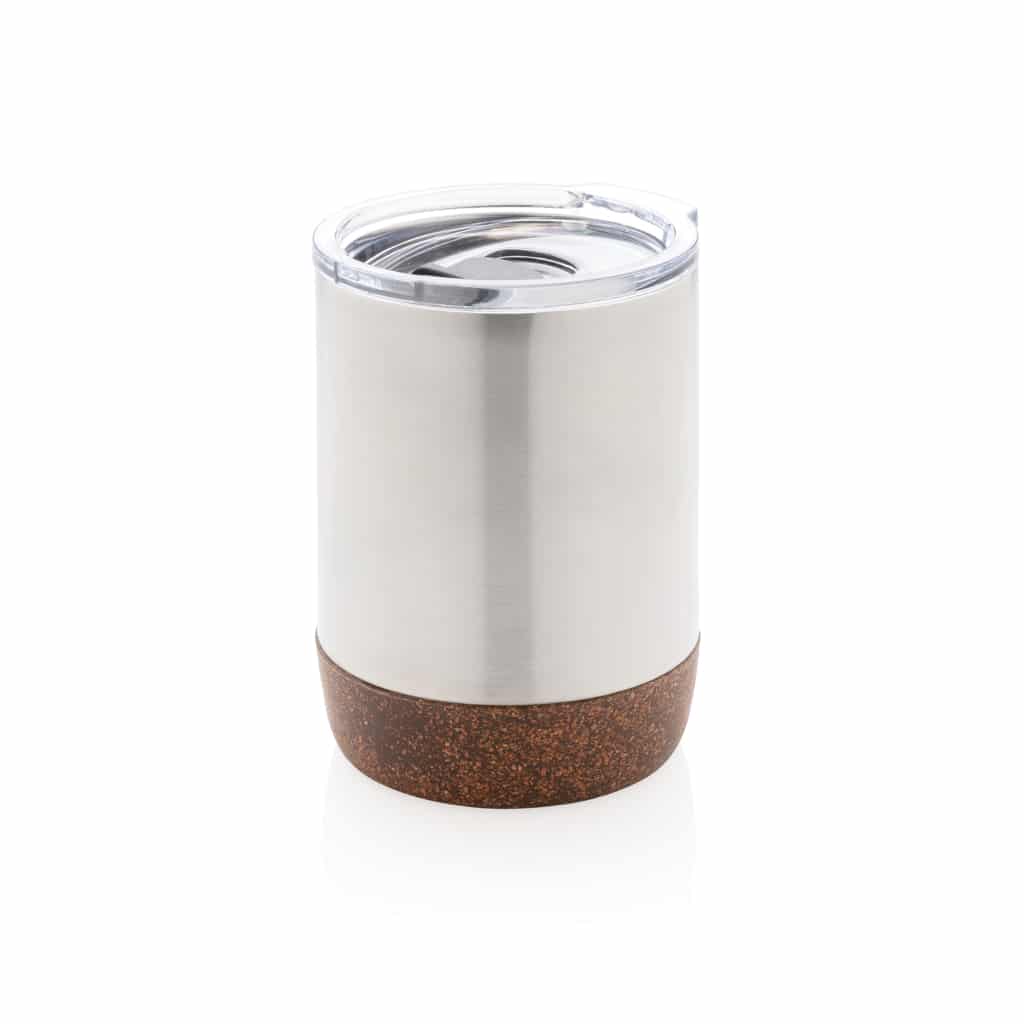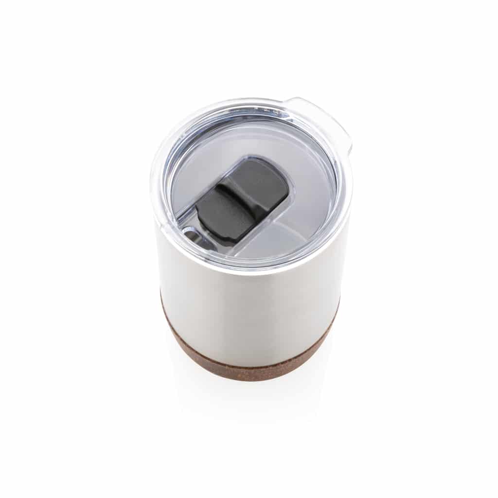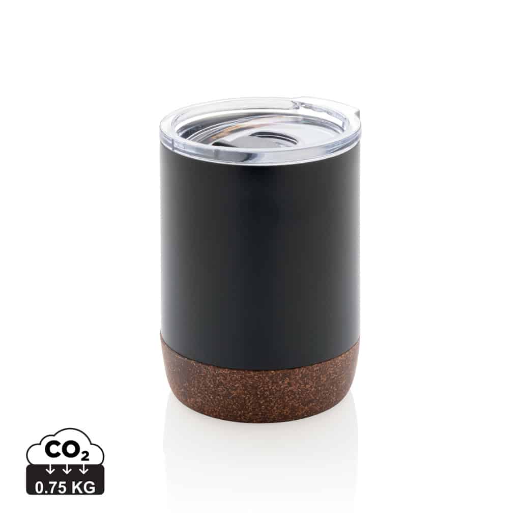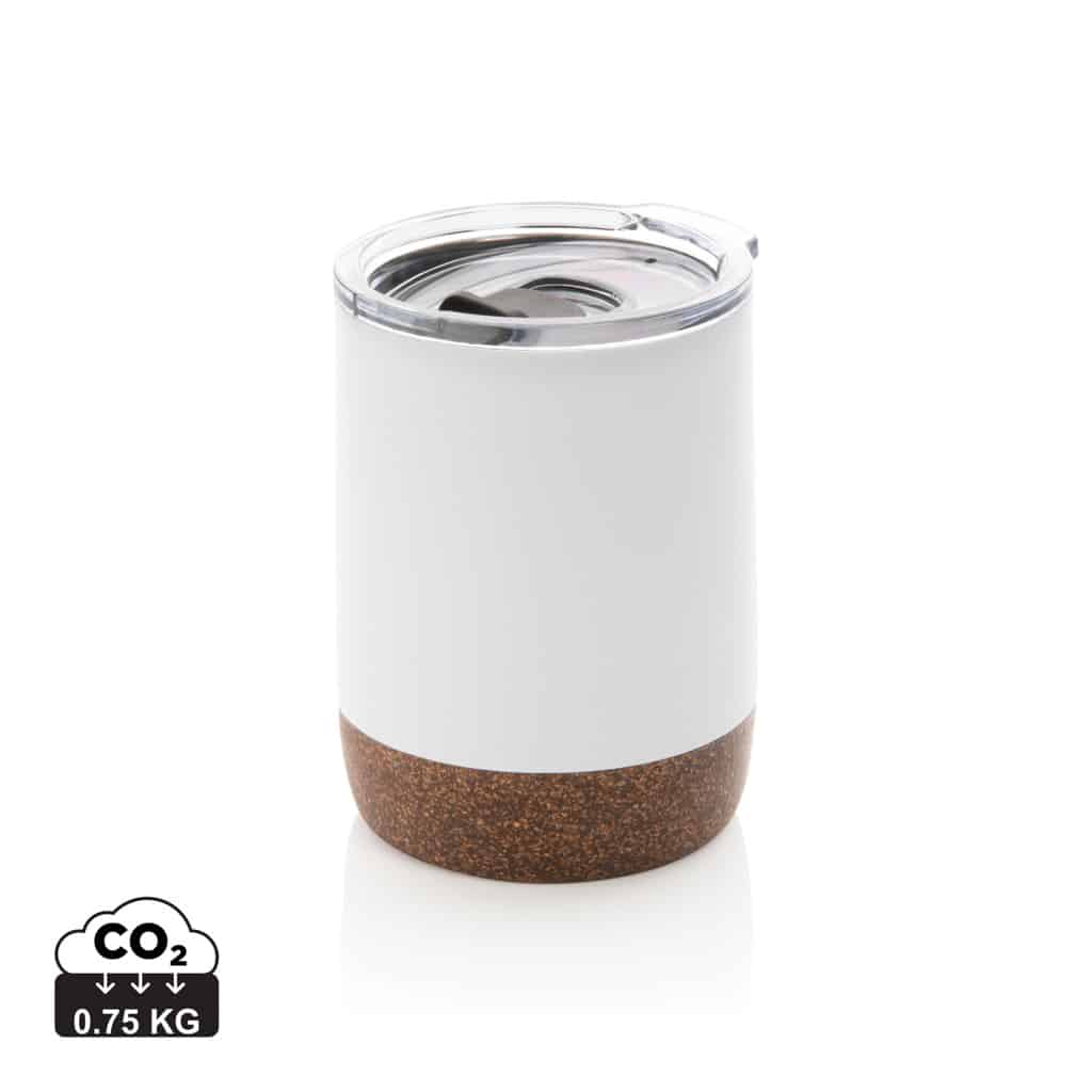 Petite tasse à café en liège et acier recyclé RCS, idéale pour valoriser votre communication responsable.
