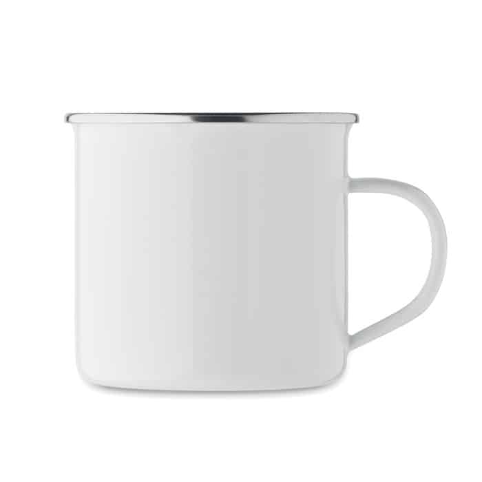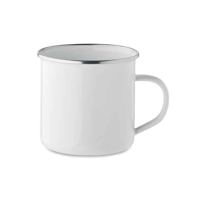 Ce mug en métal sublimé est un excellent support pour vos boissons chaudes ou froides lors de salons professionnels, événements corporate ou au bureau. Sa matière émaillée garantit une bonne résistance à l’usure, ce qui en fait un cadeau d’affaires durable et apprécié. Son design rétro attire l’attention et facilite l’identification de votre marque.