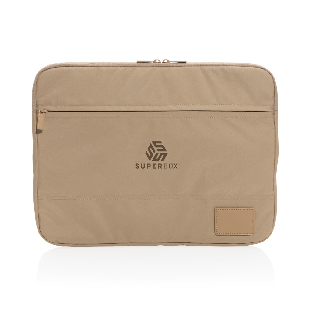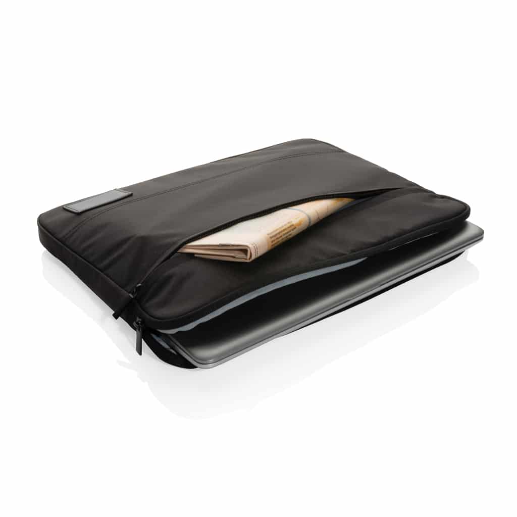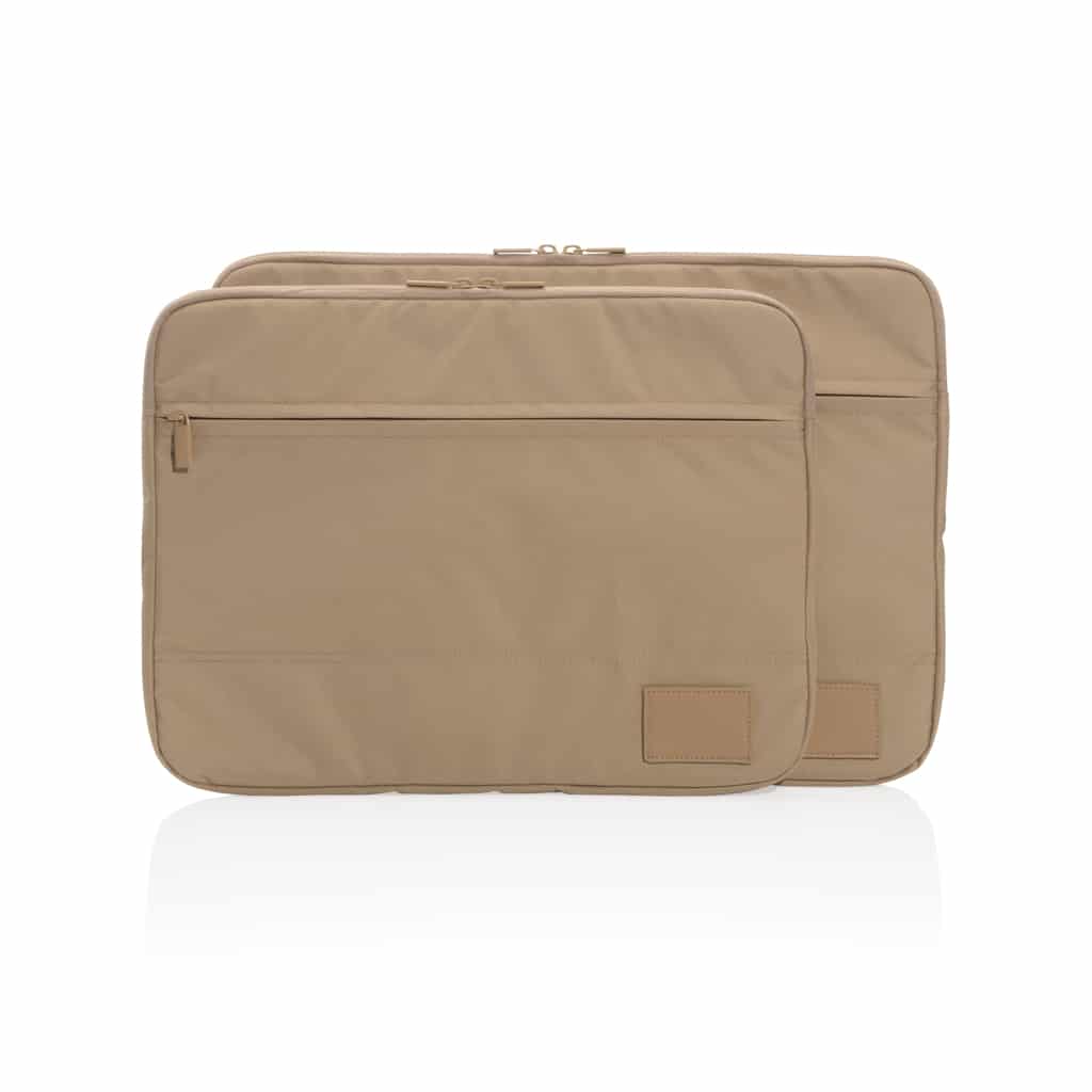 Pochette pour ordinateur portable 14" en polyester recyclé, alliant design responsable et fonctionnalité.