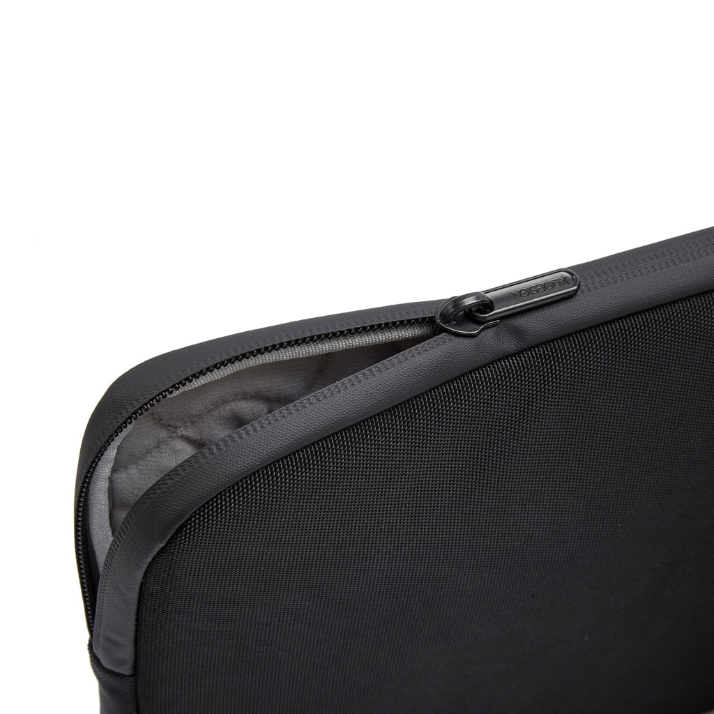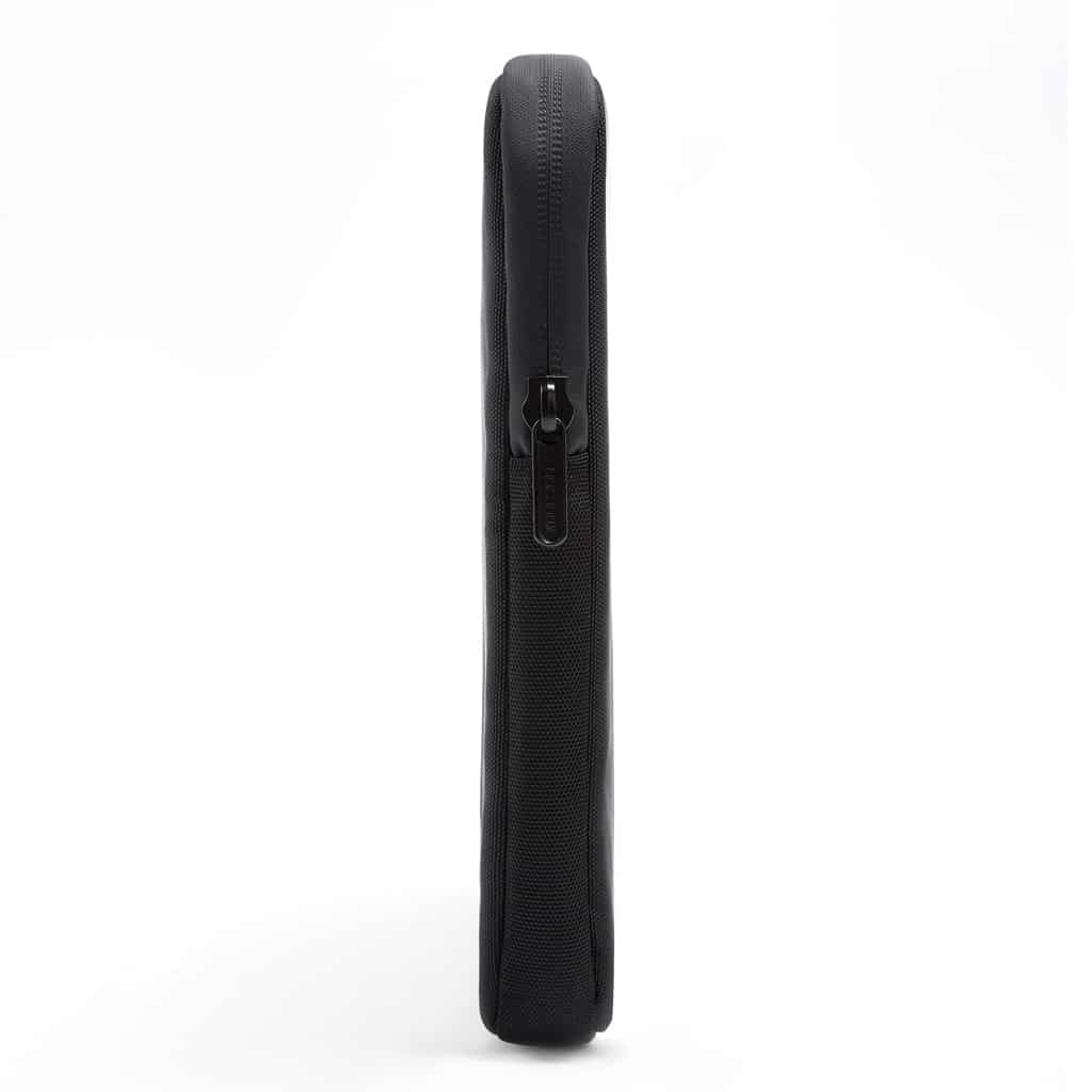 Conçue en tissu rPET 1200D robuste avec une finition déperlante, cette pochette assure une défense optimale contre les éclaboussures et l’usure quotidienne. Sa doublure intérieure en polaire grise offre un coussin doux qui prévient les rayures et absorbe les chocs. La fermeture à glissière imperméable renforce la résistance globale, garantissant la sécurité de votre appareil lors de vos déplacements.