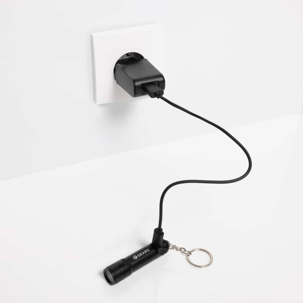 Porte-clés torche rechargeable Gear X : un objet publicitaire éco-responsable et performant pour valoriser votre marque.