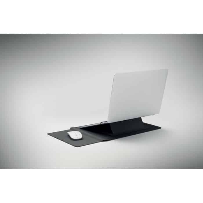 Conçue pour simplifier le quotidien des collaborateurs en déplacement ou en télétravail, cette housse combine trois fonctions essentielles : une protection renforcée pour l’ordinateur, un support ergonomique pour une meilleure posture, et un tapis de souris intégré pour plus de confort. Son format compact et léger facilite son transport lors de salons professionnels, réunions ou déplacements.