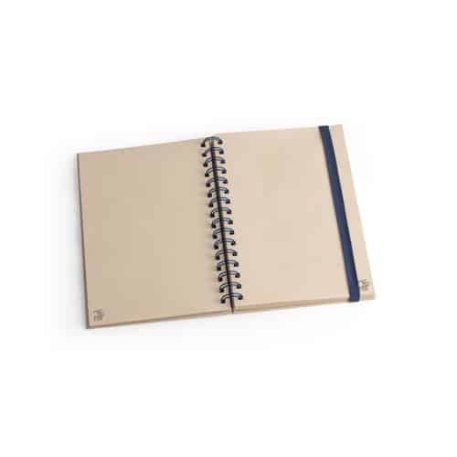 Cahier A5 à spirales, couverture rigide, en papier de canne à sucre (80% canne à sucre). Contient 160 pages unies en papier de canne à sucre (80% canne à sucre) (90 g/m²) et un élastique pour fermer le carnet