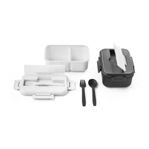 Compacte (210 x 145 x 80 mm) et robuste, cette lunch box accompagne efficacement vos collaborateurs et clients lors de leurs pauses repas en entreprise, en déplacement ou lors d’événements professionnels. Sa fermeture hermétique préserve la fraîcheur des aliments, tandis que le compartiment à couverts intégré simplifie l’organisation du repas. Facile à nettoyer, elle s’adapte parfaitement à un usage régulier.
