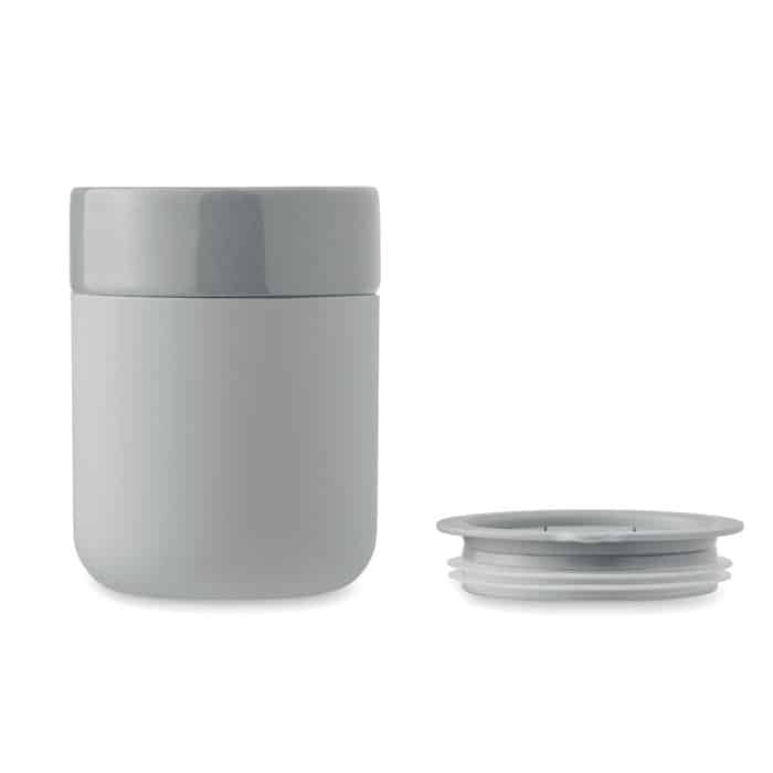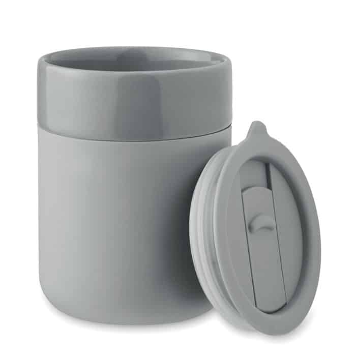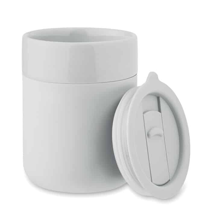 Le gobelet QERAM est un objet promotionnel innovant conçu en céramique, doté d’une manchette en silicone pour une prise en main confortable et d’un couvercle en polypropylène (PP) qui assure une utilisation pratique et hygiénique. Avec une capacité de 330 ml, il convient parfaitement pour vos boissons chaudes ou froides lors de vos événements professionnels.