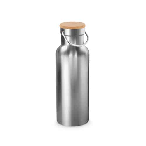 Bouteille en acier inoxydable (36% recyclée) avec double parois sous vide. Couvercle en bambou et poignée de transport en acier inoxydable. Capacité jusqu’à 570 ml. Livrée dans une boîte cadeau en papier kraft. Le produit étant fabriqué à partir de matériaux naturels, la couleur du produit ainsi que le résultat de l’impression peuvent varier d’un produit à l’autre