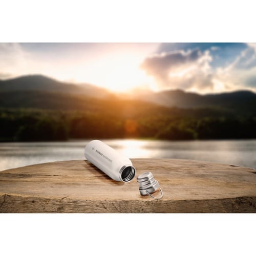 Bouteille en acier inoxydable double paroi 570 mL, idéale pour une communication durable et élégante.