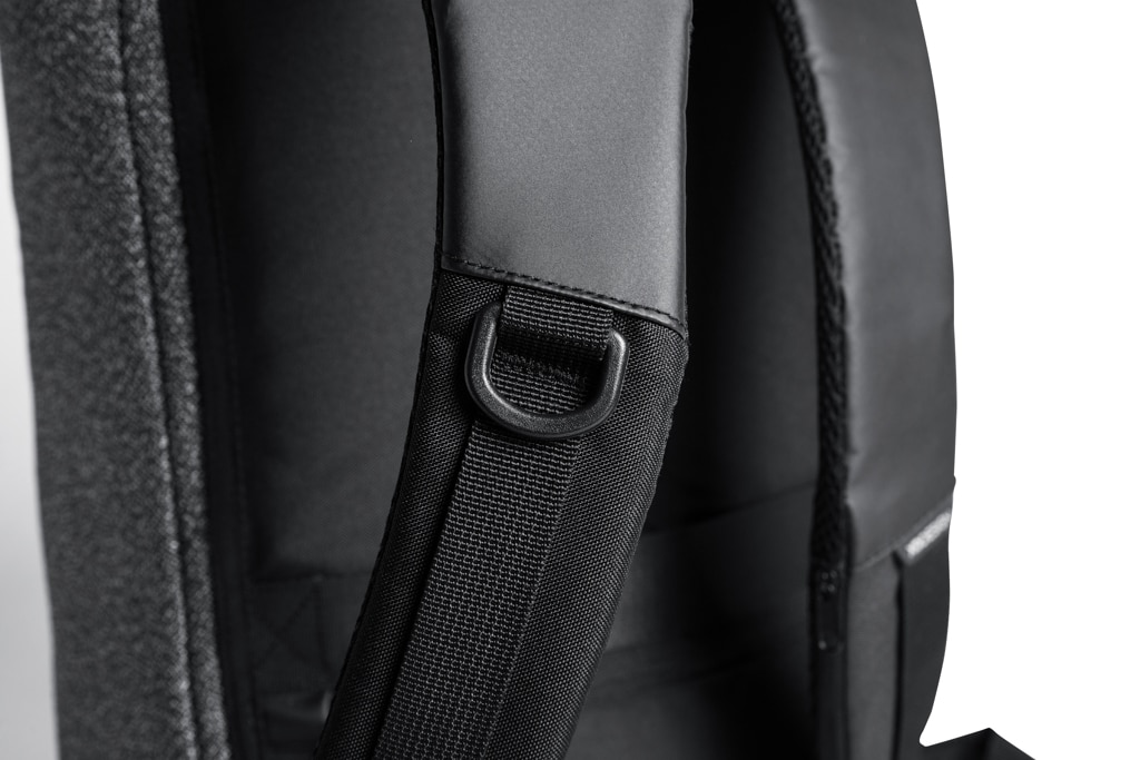 Pratique et confortable, ce sac à dos s’adapte parfaitement aux besoins des collaborateurs en déplacement, lors de salons professionnels, événements corporate ou missions terrain. Il intègre des compartiments dédiés pour un ordinateur portable jusqu’à 15,6’’ et une tablette jusqu’à 12,9’’, ainsi qu’une pochette pour objets personnels. Des poches cachées avec protection RFID dans le dos et les bandoulières protègent les cartes contre le piratage électronique. Une poche latérale accueille une bouteille d’eau, tandis qu’un élastique détachable permet de fixer des équipements sportifs ou accessoires.