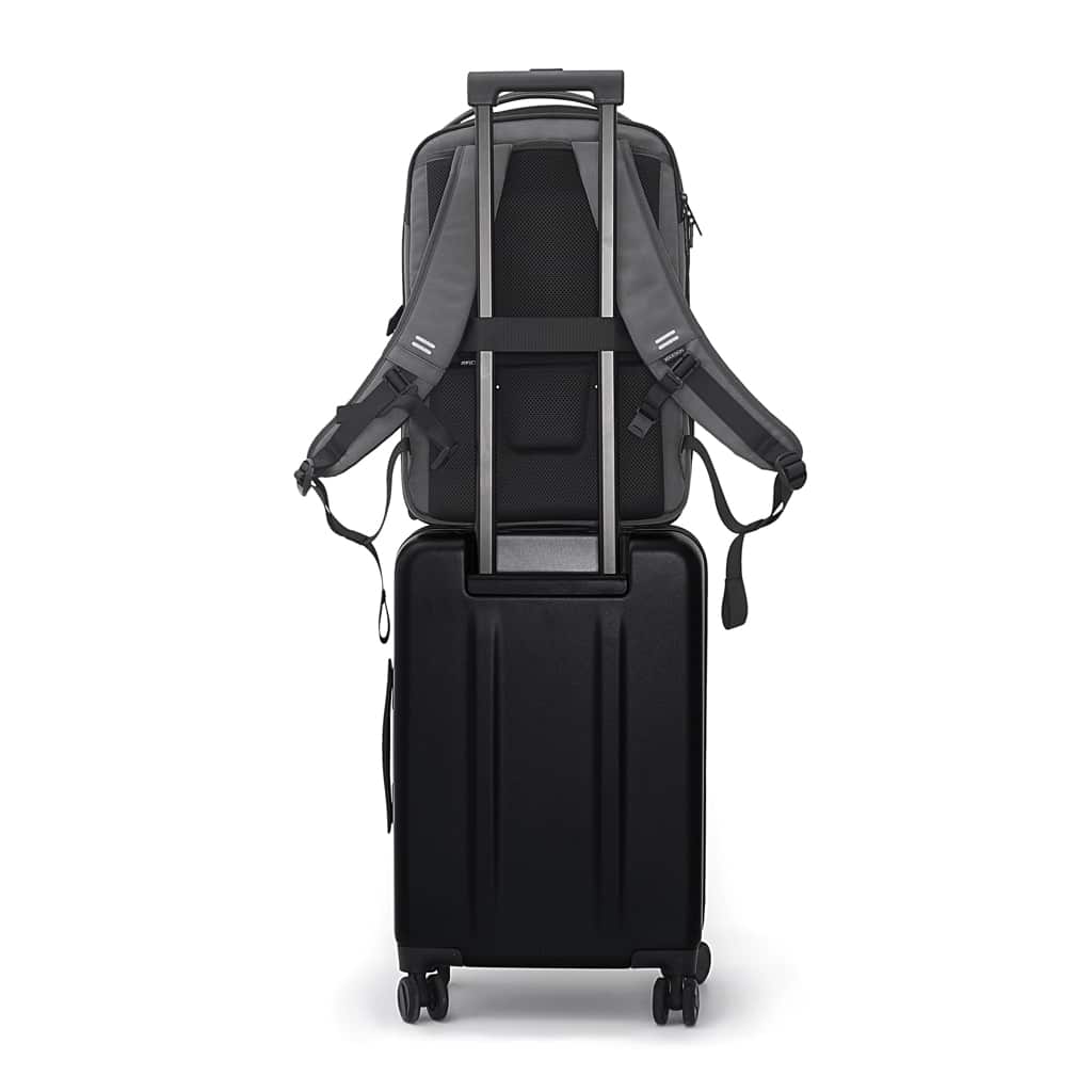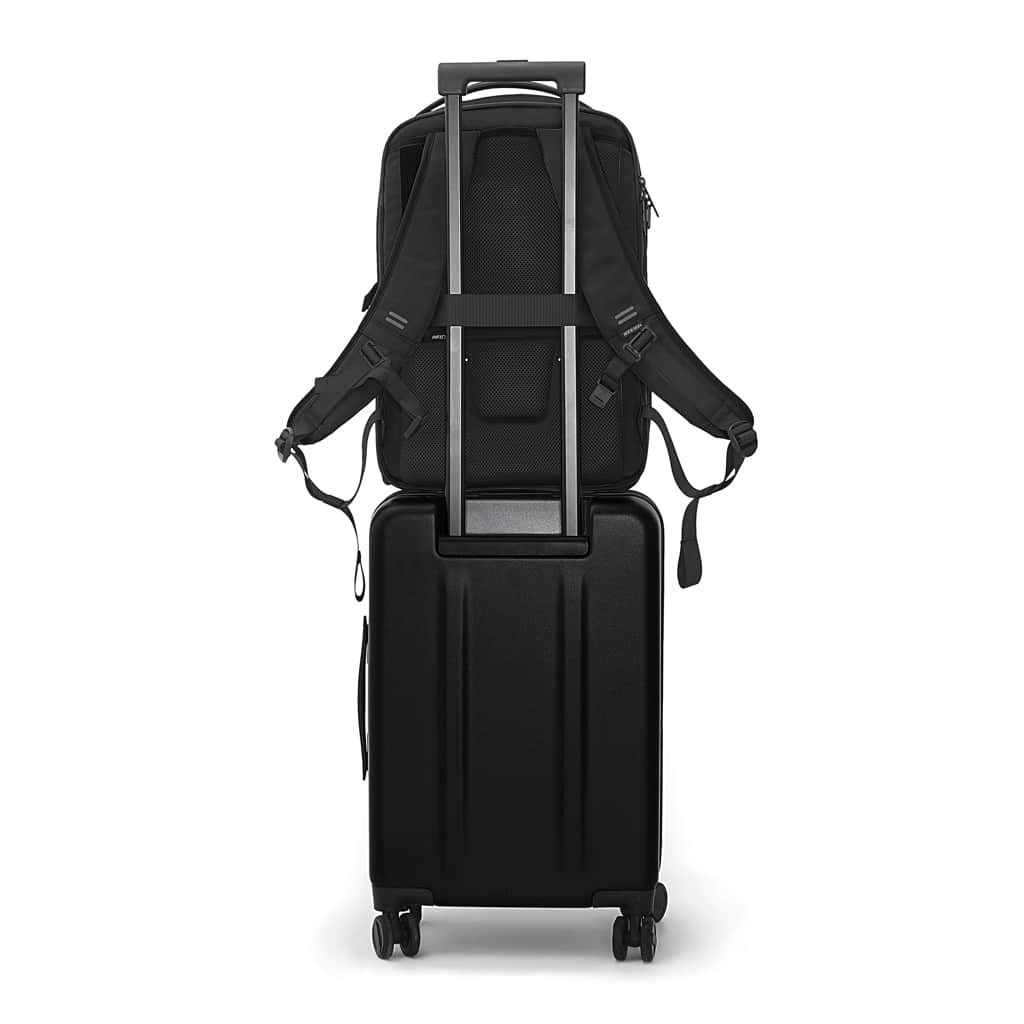 Adapté aux professionnels, ce sac à dos est idéal pour le transport sécurisé et organisé des équipements numériques et accessoires quotidiens. Ses nombreuses poches externes faciles d’accès, dont une grande poche pour bouteille d’eau avec fermeture magnétique, garantissent un confort et une praticité appréciables lors des déplacements, salons professionnels ou voyages d’affaires. Sa conception déperlante protège efficacement contre les intempéries.