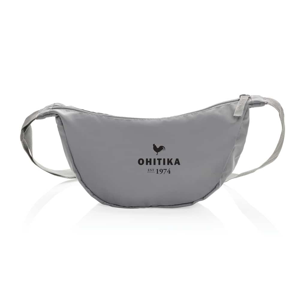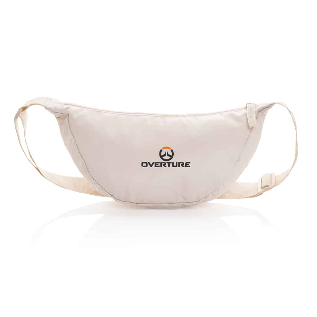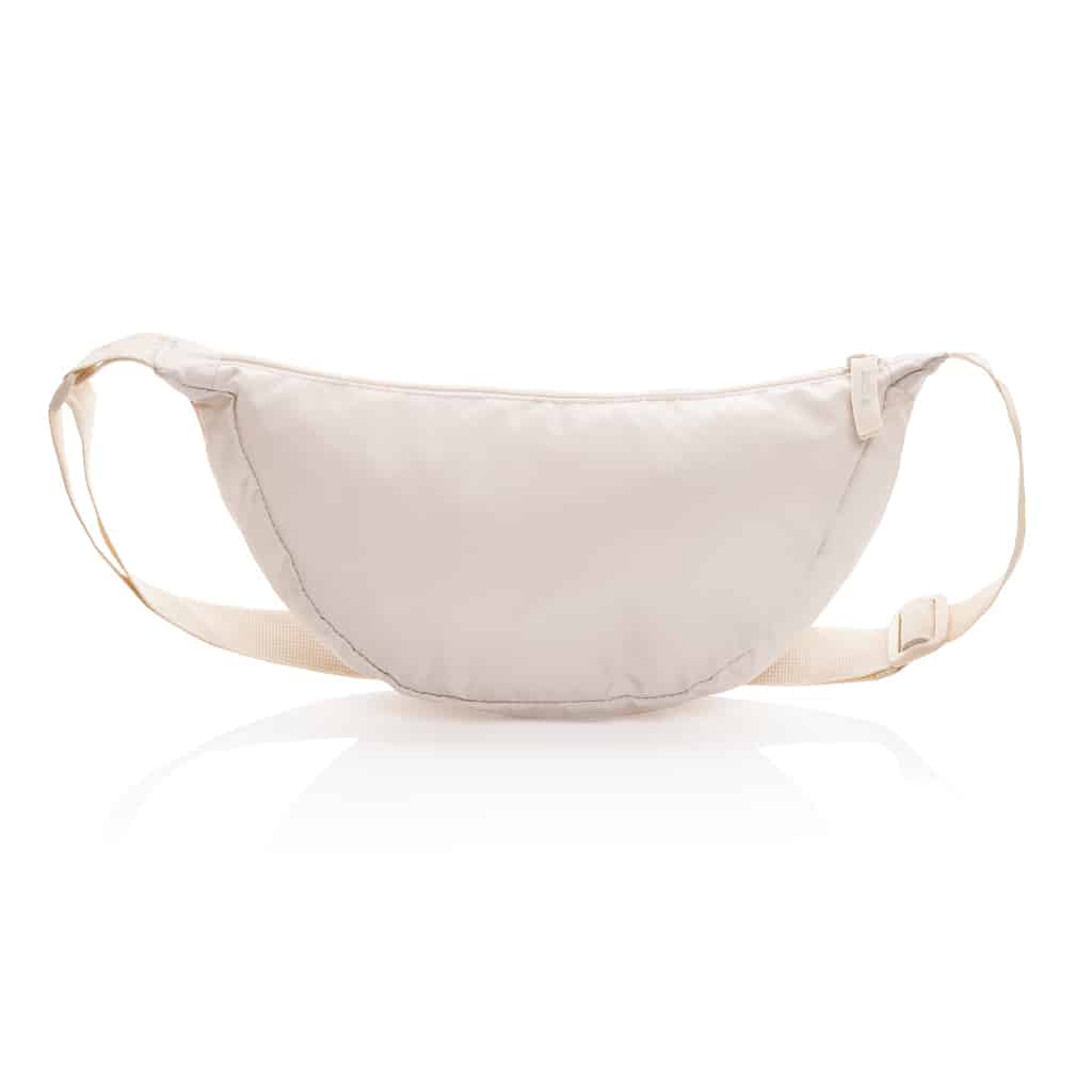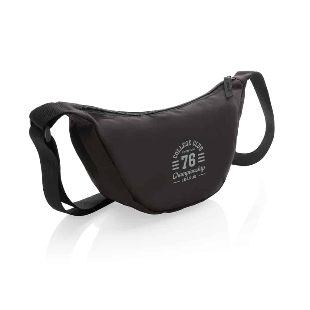 Découvrez le sac banane en bandoulière en rPET AWARE™ Crescent, un accessoire publicitaire durable et pratique.