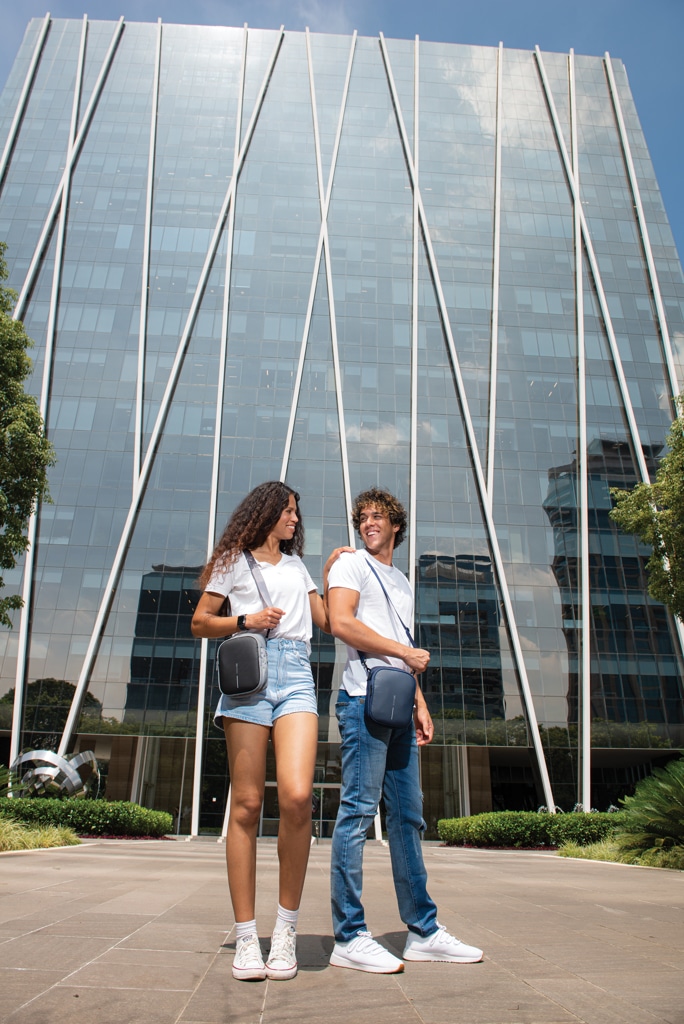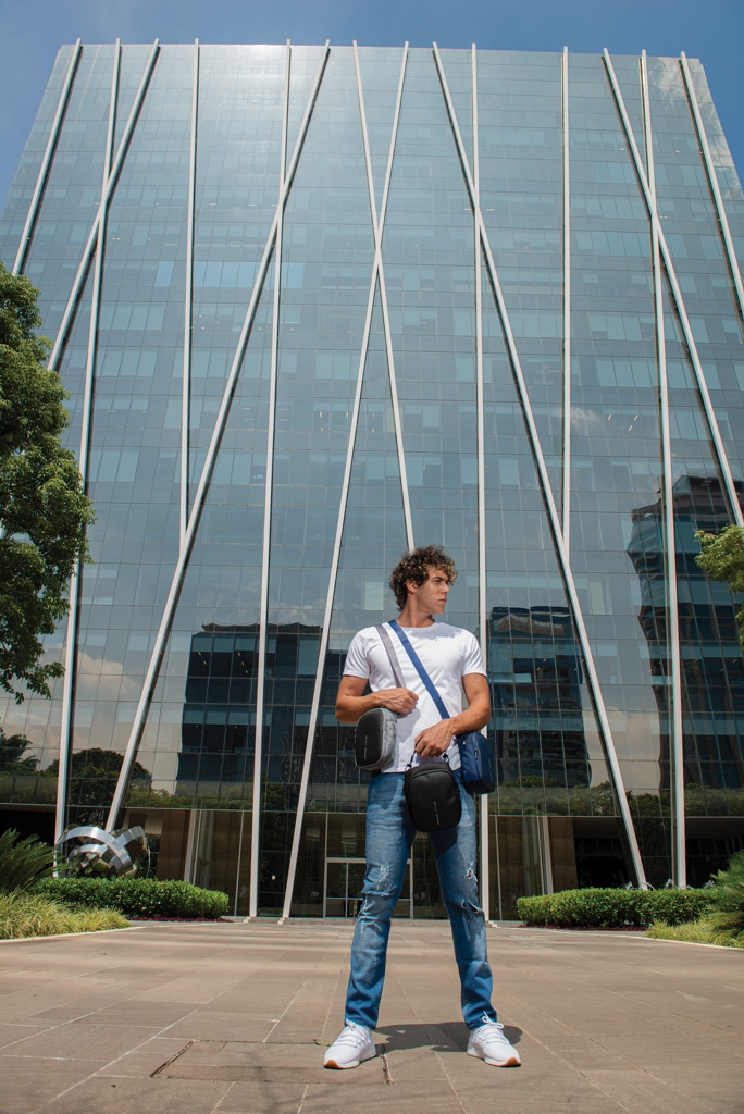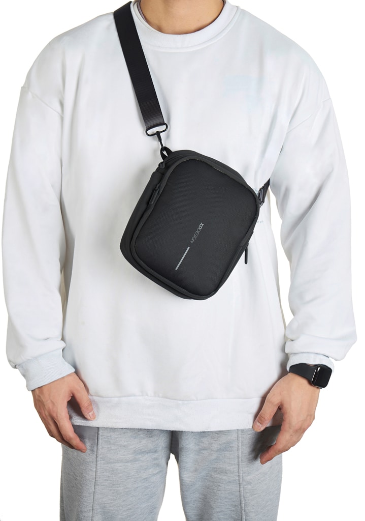 Ce sac se porte facilement autour du cou, sur l’épaule ou à la taille, offrant une grande liberté de mouvement et un confort optimal lors des déplacements professionnels. Sa poche arrière cachée assure une sécurité supplémentaire pour ranger discrètement argent, cartes ou objets précieux. De plus, une poche astucieuse permet d’accueillir une bouteille d’eau, pratique et discrète lorsqu’elle est repliée.
