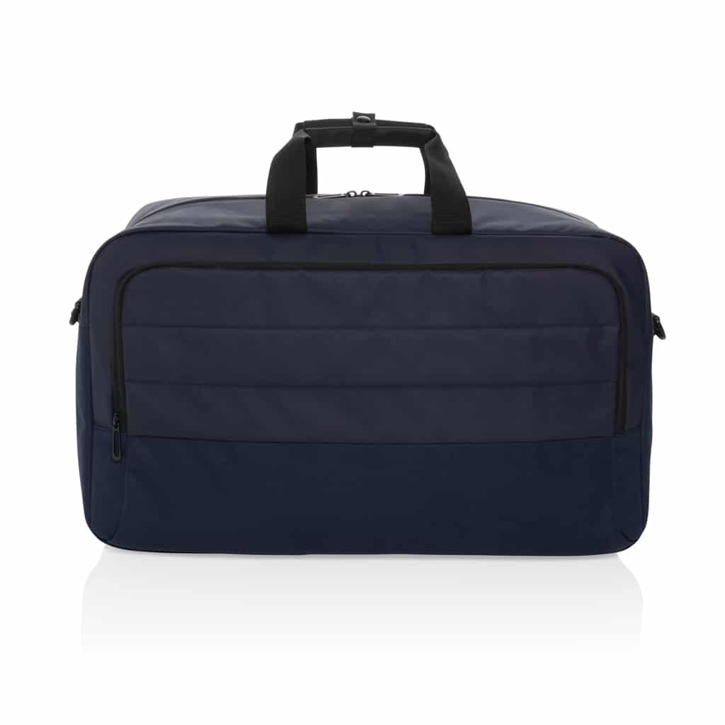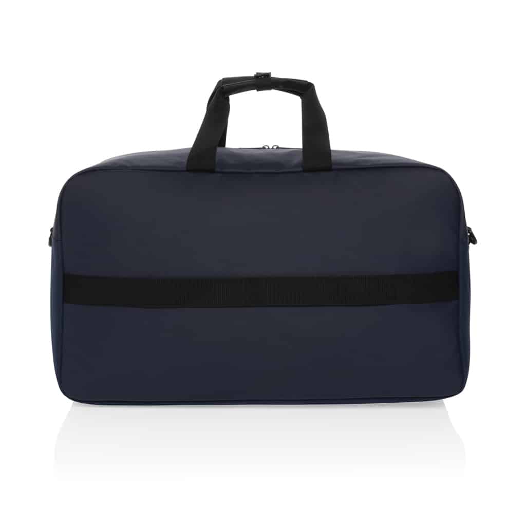 Découvrez le sac week-end en rPET AWARE™ Armond, un bagage écologique et spacieux, parfait pour vos déplacements professionnels.