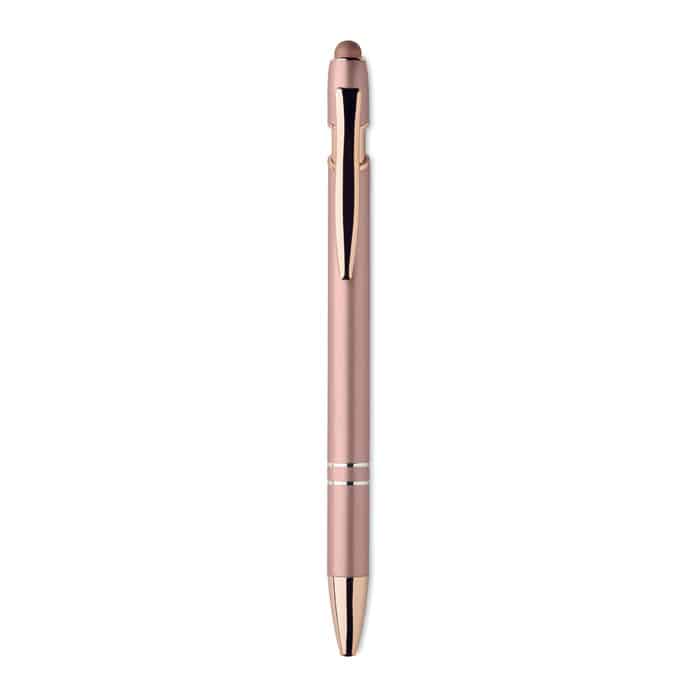 Le SCRIBBLE est un stylo-bille à mécanisme poussoir conçu en aluminium recyclé, apportant une touche de modernité et de durabilité à votre communication. Ses finitions en rose gold confèrent une esthétique raffinée qui séduira vos interlocuteurs. Doté d’une encre bleue classique, il assure une écriture fluide, parfaite pour une utilisation quotidienne.