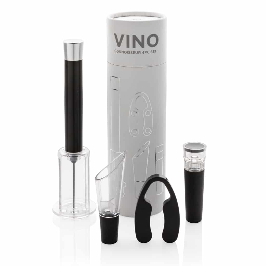 Découvrez le set 4pcs Vino Connoisseur, un ensemble d’outils indispensables pour les amateurs de vin en entreprise.