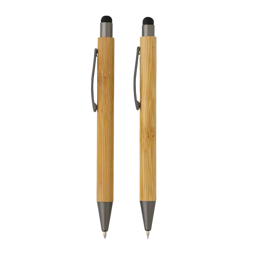 Set de stylos en bambou dans un coffret, idéal pour valoriser votre communication responsable et élégante.