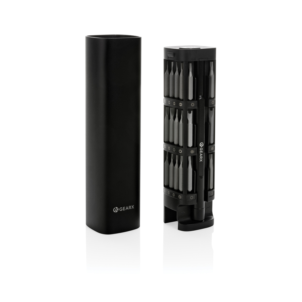 Set de tournevis 46 pcs en aluminium recyclé RCS Gear X : un kit complet pour vos réparations précises et durables.