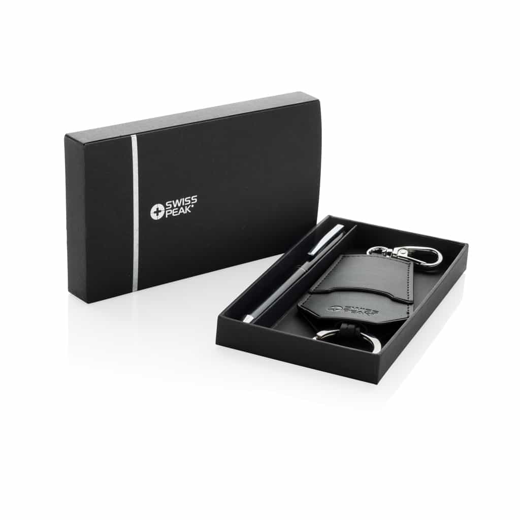 Set porte-clés et stylo en PU recyclé RCS Swiss Peak Tula, un cadeau d’affaires écologique et raffiné.